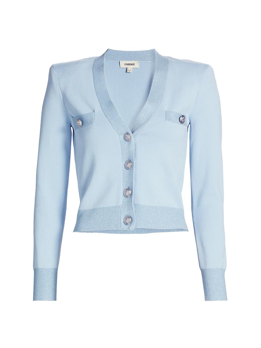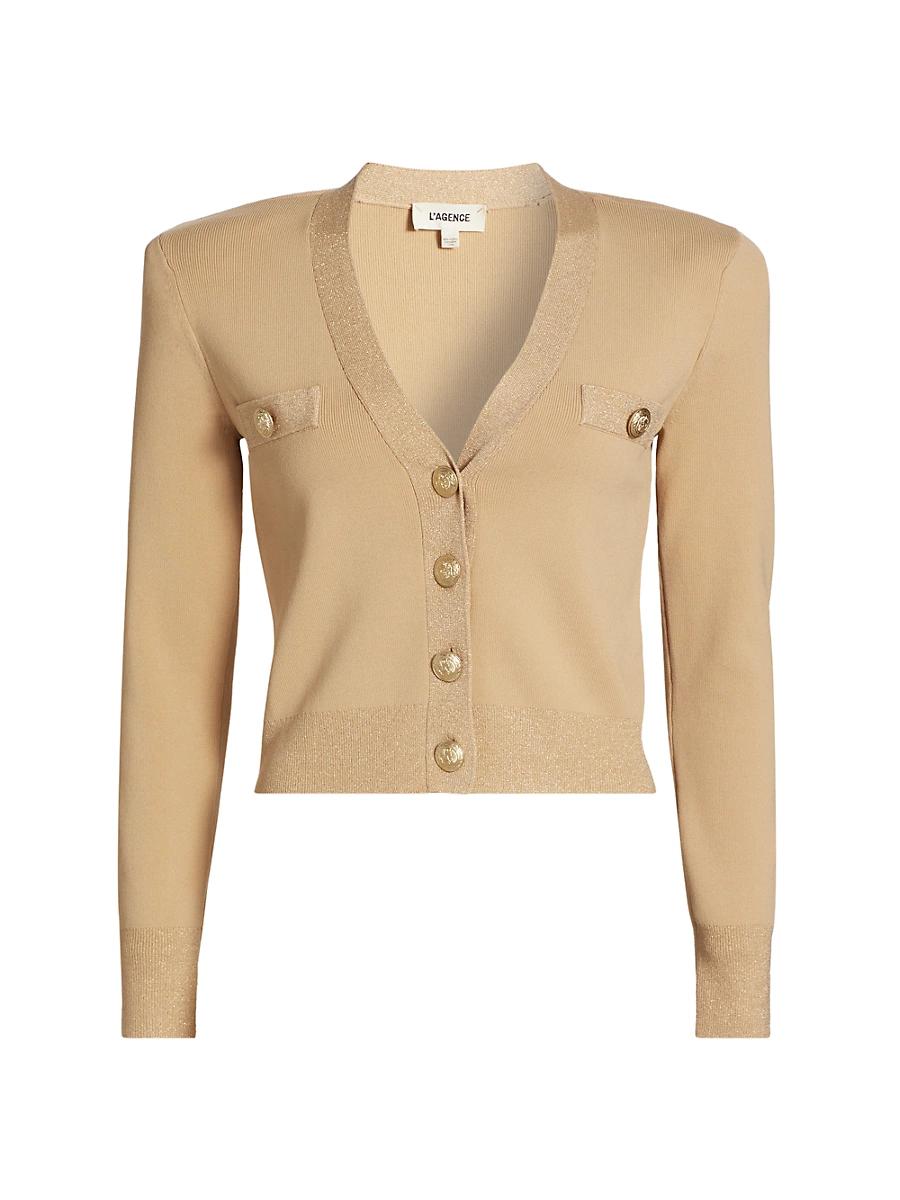 LAGENCEs fitted Taya knit crop cardigan features a V-neck, long sleeves, and chest welt pockets. V-neck Long sleeves Chest welt pockets Button-front closure 52% rayon/42% nylon/3% polyester/2% spandex/1% metallic fiber Dry clean only Imported SIZE & FIT About 20 from shoulder to hem Model measurements: 510 tall Model is wearing a US size Small ABOUT THE BRAND Founded in 2008, LAgence marries Southern California ease with chic Parisian style. Using luxurious fabrics, the Los Angeles-based label delivers feminine collections that are both timeless and versatile. In 2015, the label launched a denim line in a range of sleek, impeccably tailored cuts. Contemporary Sportswear - Workshop > Lagence > Saks Fifth Avenue > Barneys. LAGENCE. Color: Laurel Green Lurex. Size: XS.