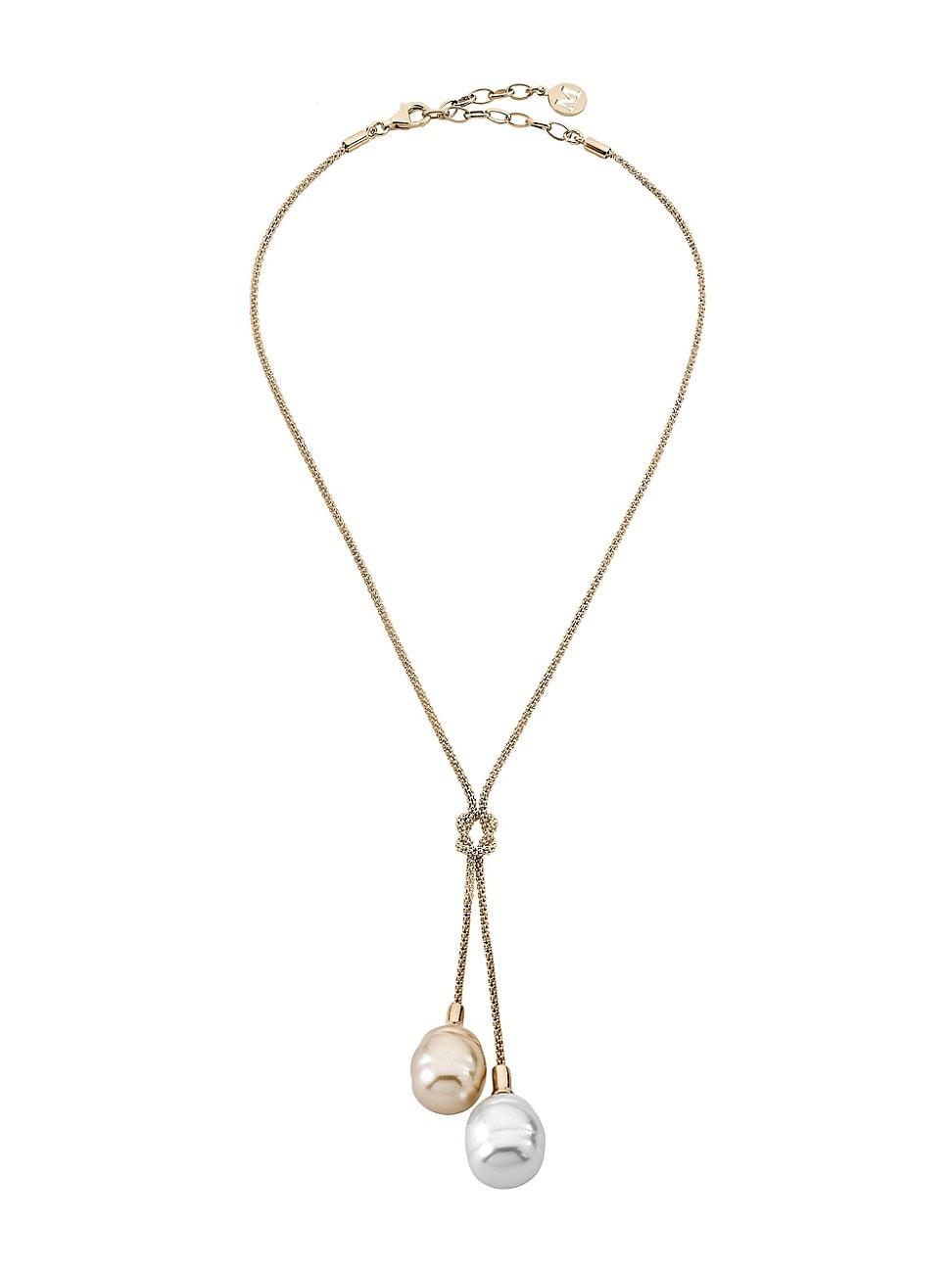 From the Tender Collection. Crafted of 18K gold-plated sterling silver, this romantic necklace by Majorica features a knotted silhouette punctuated with two-tone lab-grown baroque pearls. Lab-grown baroque pearls, 14mmwhite and champagne 18k gold plated silver Lobster clasp Made in Spain Adjustable 18 length. Fashion Jewelry - Semi Prec Coll C > Majorica > Saks Fifth Avenue > Barneys. Majorica. Color: Pearl.