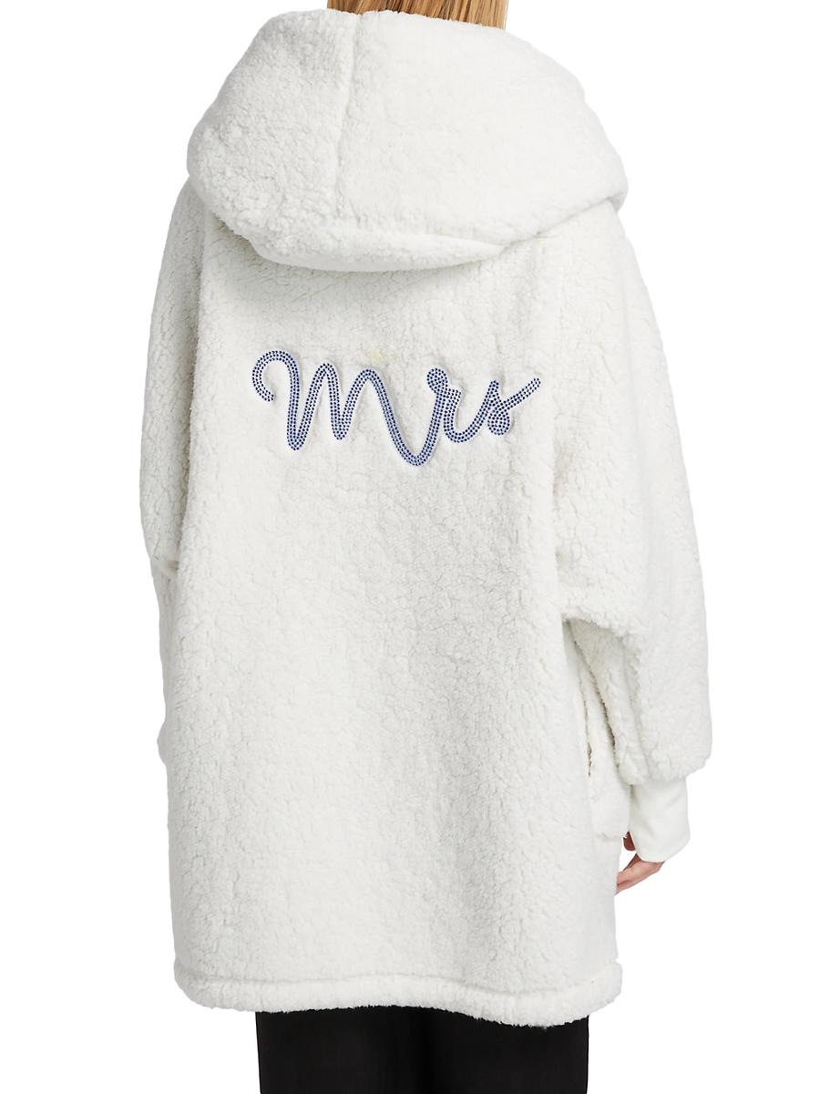 ONLY AT SAKS. From the Best Lounger In The World Collection. Crafted of cozy sherpa, this by JILL MARTIN hooded lounge jacket features a crystal-bedazzled MRS patch at the back. Hood Shawl collar Long sleeves, thumbholes Side slip pockets One-button closure 100% polyester Machine wash Imported SIZE & FIT About 33 from shoulder to hem Model measurements: 510 tall Model is wearing a US size Small. Contemporary Sportswear - Casual Separates > By Jill Martin > Saks Fifth Avenue > Barneys. by JILL MARTIN. Color: White. Size: Medium.