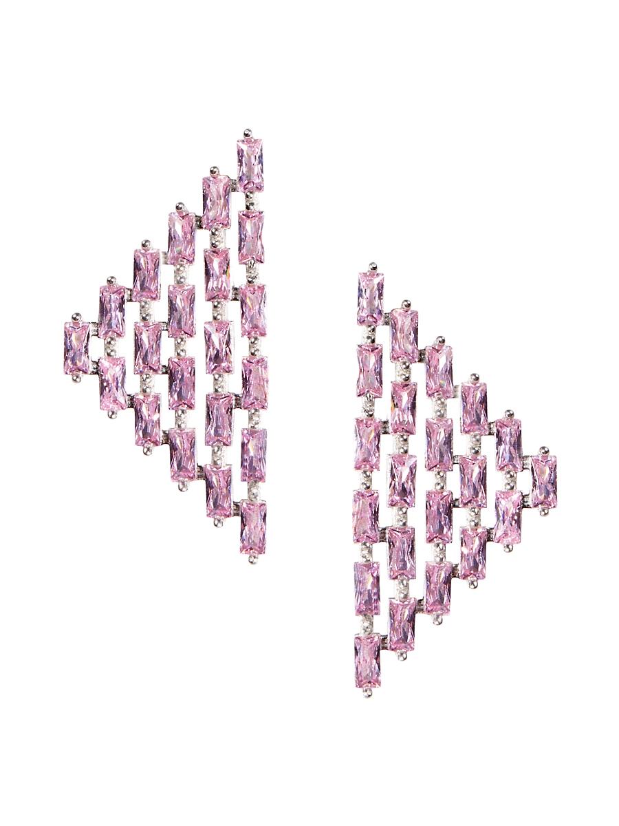 From The Collection. Designed with a structured triangular silhouette, Nickho Reys Cat Earrings feature rhodium vermeil construction adorned with bright baguette crystals. Crystals Rhodium vermeil Post back Imported SIZE About 0.75W x 1.73L. Fashion Jewelry - Trend Jewelry > Nickho Rey > Saks Fifth Avenue > Barneys. Nickho Rey. Color: Pink.