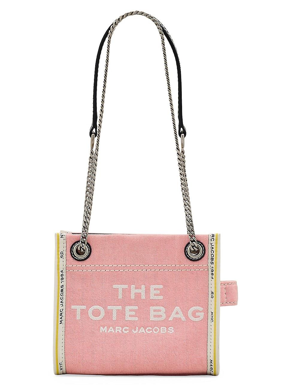 Marc Jacobss The Denim Chain Crossbody tote bag is a versatile accessory that can be worn as a shoulder bag or crossbody, thanks to the pull-through chain strap. Made of cotton, it features a magnetic closure and an internal zip pocket for secure storage. Adjustable leather and chain-link pull-through shoulder strap Interior: one zip pocket Magnetic closure Cotton Imported SIZE About 7.28W x 5.91H x 3.94D Adjustable pull-through shoulder strap: about 11.22 drop. Handbags - Marc Jacobs > Marc Jacobs > Saks Fifth Avenue > Barneys. Marc Jacobs. Color: Dark Wash.