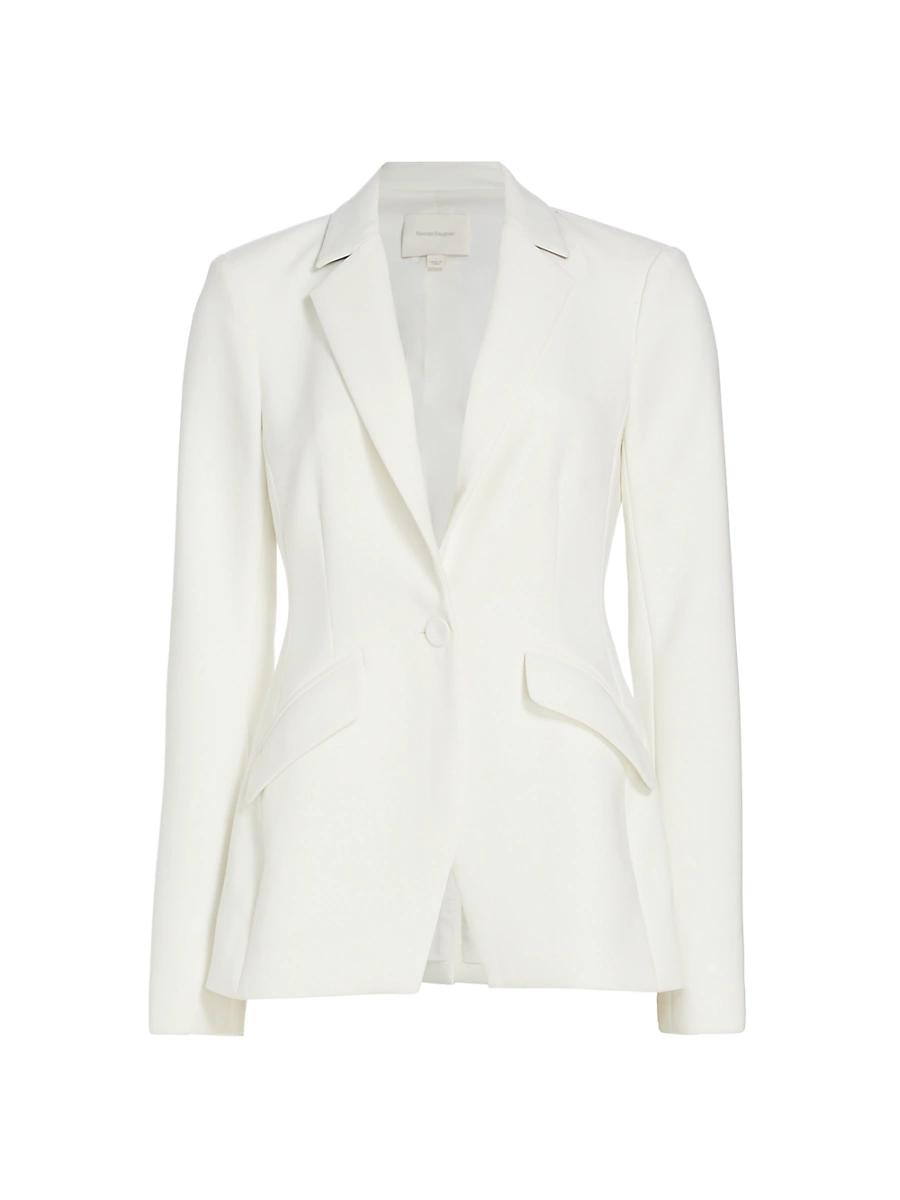 Crafted with a touch of stretch, Favorite Daughters signature blazer spotlights a tailored cut and front darts for added shape. Flap pockets and a single-button closure complete the look. Notch lapels Long sleeves, buttoned cuffs Flap pockets Button-front closure 74% polyester/20% rayon/6% elastane Dry clean Imported SIZE & FIT About 28.25 from shoulder to hem Model measurements: 510 tall Model is wearing a US size Small. Contemporary Sportswear - Casual Separates > Favorite Daughter > Saks Fifth Avenue > Barneys. Favorite Daughter. Color: Ivory. Size: XS.