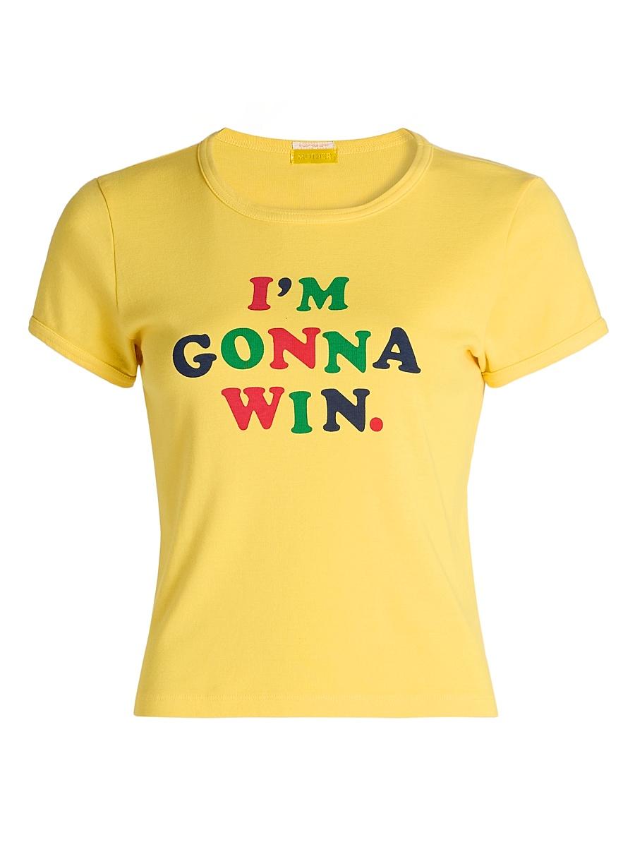 The Itty Bitty Ringer T-shirt from Mother is crafted of soft cotton and features a graphic print with colorful IM GONNA WIN lettering. Crewneck Short sleeves Pulls over 100% cotton Machine wash Made in USA SIZE & FIT About 20 from shoulder to hem Model measurements: 510 tall Model is wearing a US size Small ABOUT THE BRAND An ode to growing up in California in the 70s, Mother focuses on vintage-inspired garments with a modern touch. When Lela Becker and Tim Kaeding launched their denim