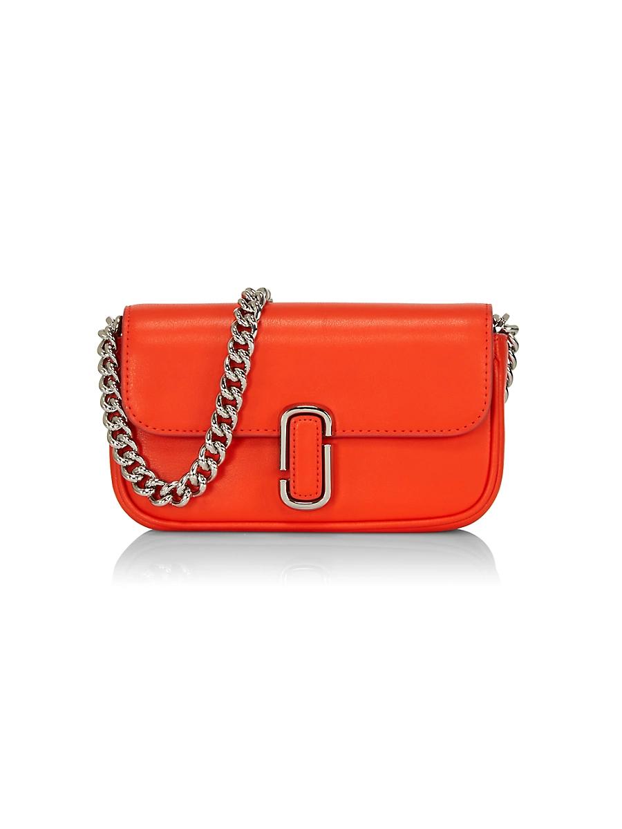 Styled with signature Double J logo hardware, Marc Jacobs Mini Soft bag is designed with curved edges. This smooth leather piece is accompanied by a sleek chain strap. Chain strap Removable, adjustable strap Goldtone hardware Snap closure Interior zip compartment Three interior card slot Leather Lining: 100% polyester Imported SIZE 7.5W x 4.25H x 1.5D. Handbags - Marc Jacobs > Marc Jacobs > Saks Fifth Avenue > Barneys. Marc Jacobs. Color: Electric Orange.