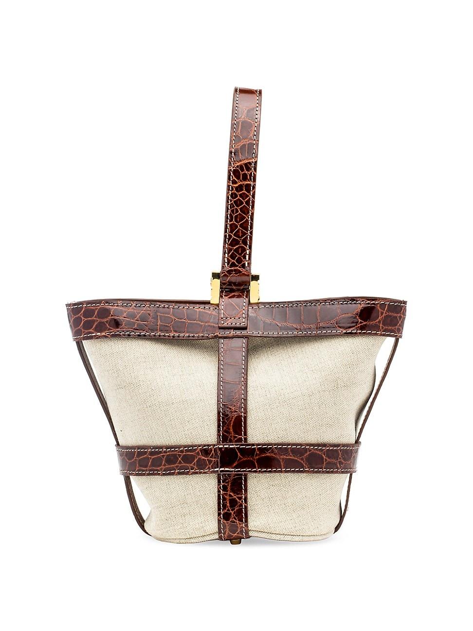 The Linen LL Alligator Tote has the signature Alligator accents and the brand LL metal logo.The fine linen is woven in Italy and accented with handcrafted American Alligator both on the outside and inside of the Tote. Snap closure Brass hardware covered in 2 Microns of Gold Interior front pocket Lined in the highest quality calf leather Made in Italy SIZE 9 L X 7 H X 4 1/2 W 13 strap length 1/2 lbs. Lsd Handbags - Handbag/accessories Lsd > Lana Marks > Saks Fifth Avenue > Barneys. Lana Marks. Color: Cognac.