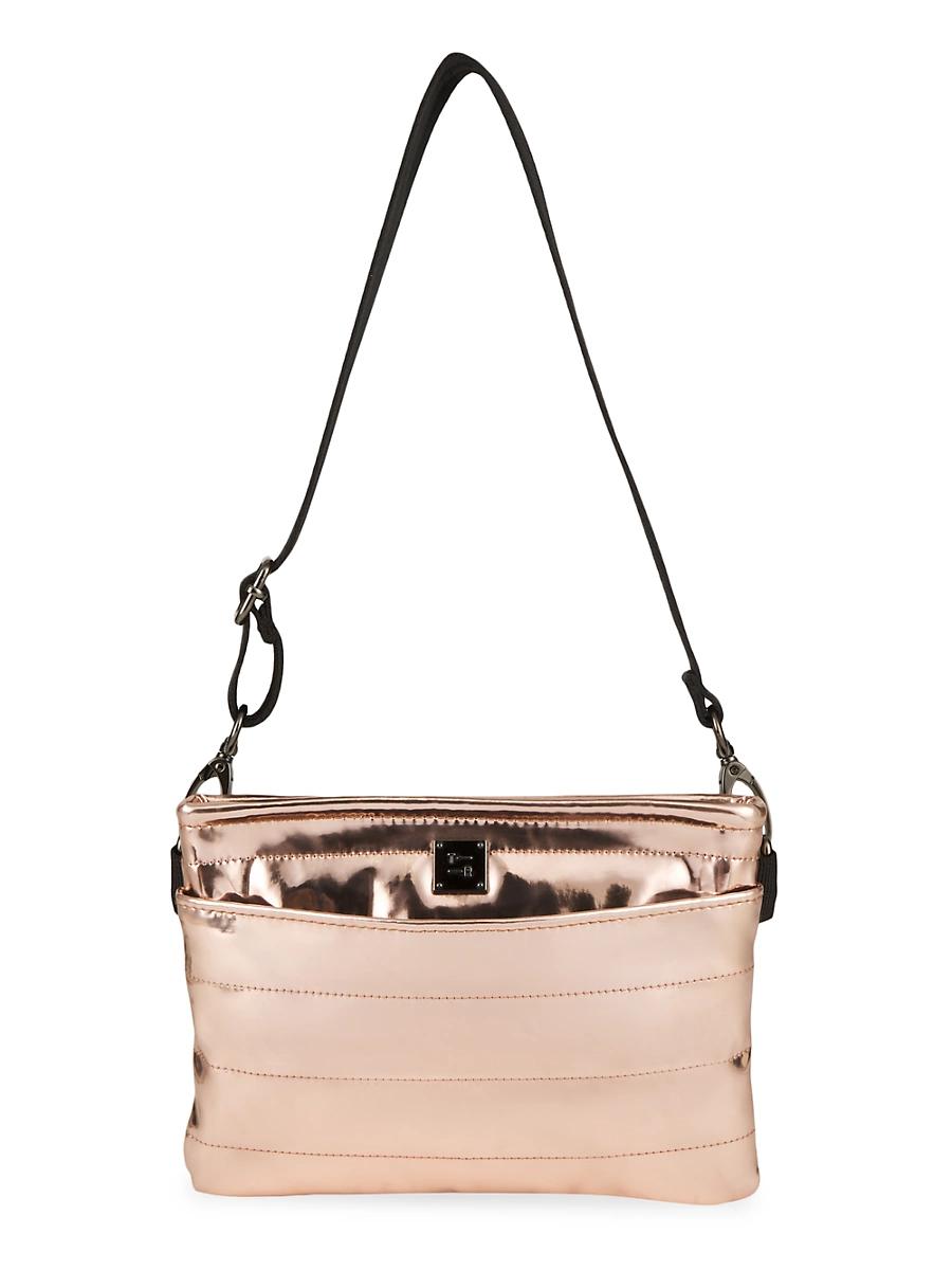 The Original belt bag from Think Royln is designed with an adjustable, removable strap. Adjustable, removable strap Exterior: one front slip and one back zip pocket Top zip closure Polyester Imported SIZE About 9W x 6H. Handbags - Collection Handbags > Think Royln > Saks Fifth Avenue > Barneys. Think Royln. Color: Rose Gold Mirror.