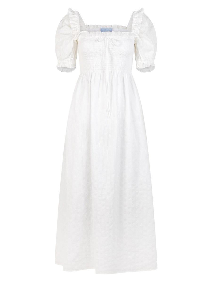 Meet the Scarlett Nap Dress. Scarlett features our proprietary, elasticated Nap Smocking, a slim skirt that hits around the ankle, puff sleeves and lace detailing at the neckline. Hand wash with cold water wash, hang to dry, warm iron if needed or dry clean 100% Cotton Model is 59 and wears a size XS Imported. Lsd Rtw - Womens Rtw Lsd Mp > Hill House Home > Saks Fifth Avenue > Barneys. Hill House Home. Color: White Linear. Size: XXS.