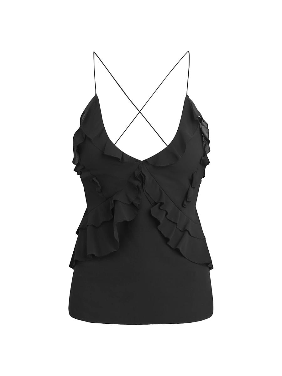 Favorite Daughters The Who Me top flaunts a tiered ruffled bodice, lace-up back, and thin spaghetti straps. V-neck Spaghetti straps Pulls over 100% polyester Hand wash Imported SIZE & FIT About 26 from shoulder to hem Model Measurements: 510 tall Model is wearing a US size Small. Contemporary Sportswear - Casual Separates > Favorite Daughter > Saks Fifth Avenue > Barneys. Favorite Daughter. Color: Moonbeam. Size: XL.
