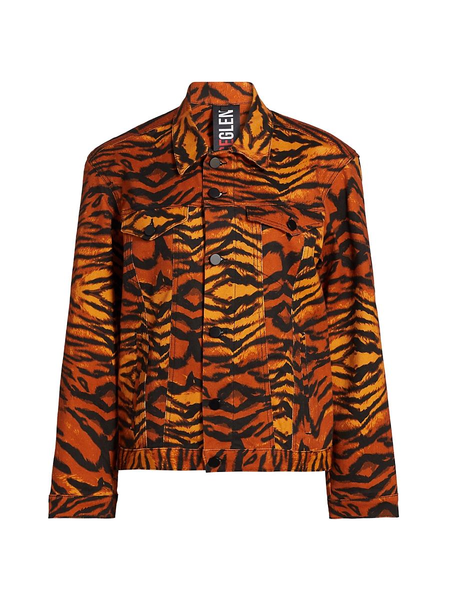 Crafted of stretch cotton denim, BruceGlens striking jacket showcases an exotic tiger stripe print. This piece features a spread collar, long sleeves with button-barrel cuffs, and chest button-through flap pockets. Spread collar Long sleeves, button-barrel cuffs Chest button-through flap pockets Button-front closure 98% cotton/2% spandex Machine wash Imported SIZE & FIT This style is designed for a relaxed fit About 25 from shoulder to hem Model measurements: 510 tall Model is wearing a US size Small. Contemporary Sportswear - Trend > Bruceglen > Saks Fifth Avenue > Barneys. BruceGlen. Color: Brown. Size: Medium.