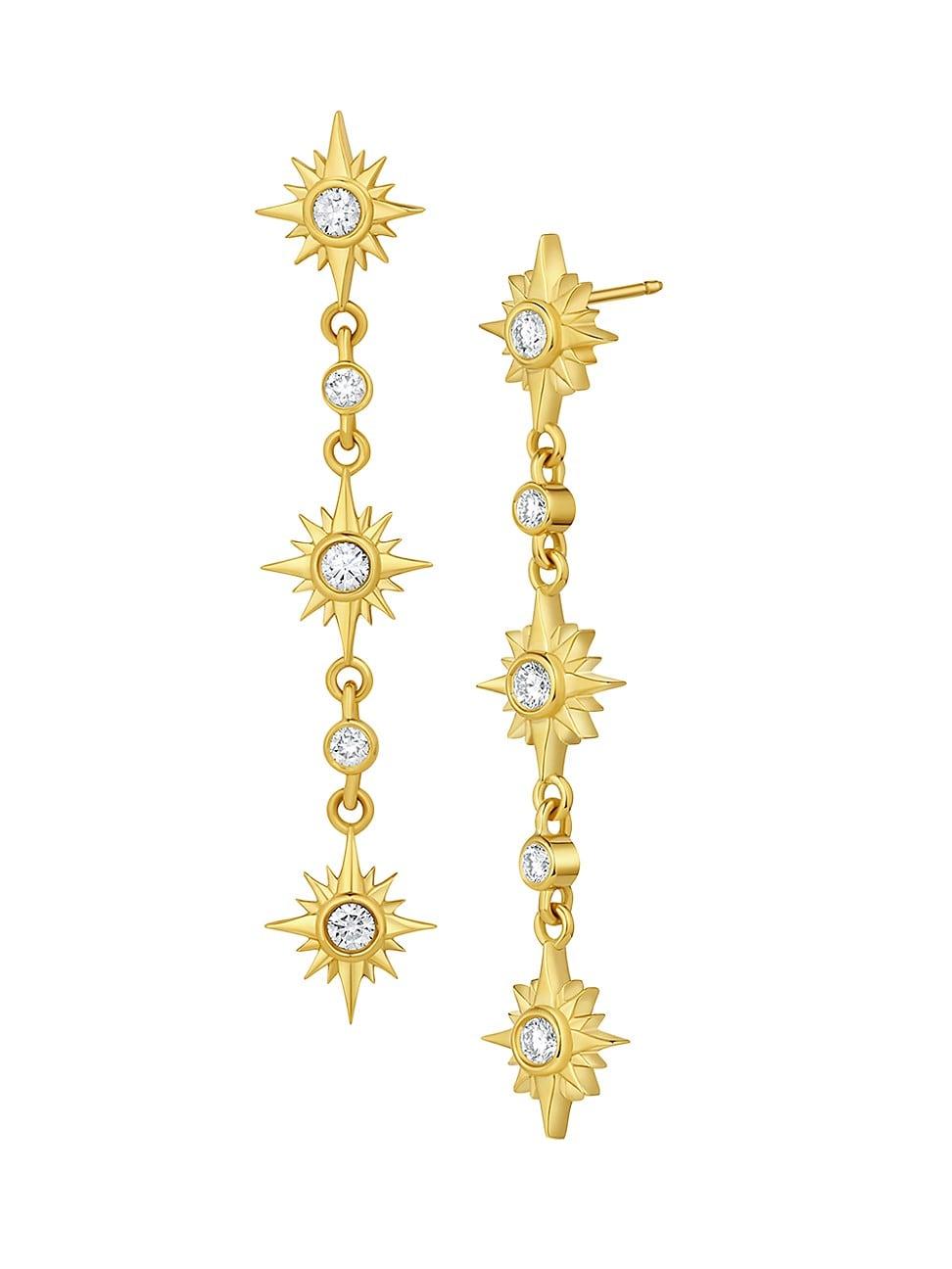 From the Tillya Tepe Collection. Featuring a charming starbust motif, Mazahris drop earrings are crafted of 18K yellow gold set with round bezel-set diamonds. The Tillya Tepe Collection draws inspiration from the famed excavation of the same name in Sheberghan, Afghanistan in 1978, during which archaeologists unearthed a trove of ancient, precious objects. Made with fair trade gold Diamonds, 0.48 tcw Diamond color grade: G-H Diamond clarity grade: SI2 18K fair trade yellow gold Post back Made in USA SIZE About 2L. Fashion Jewelry - Semi Prec Coll C > Mazahri > Saks Fifth Avenue > Barneys. Mazahri. Color: Gold.