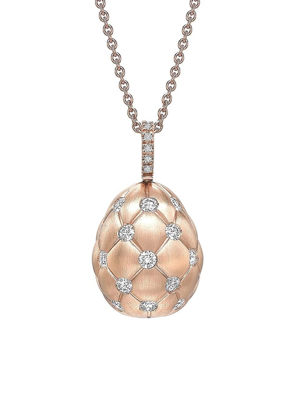 The Treillage Collection is inspired by the Diamond Trellis Egg, created by Faberg in 1892. The evocative designs, with their soft, tactile and gem-set quilting, represents the perfect marriage of heritage and modernity. Treillage Diamond Rose Gold Pendant features round white diamonds, set in 18 karat brushed rose gold. The egg pendant is 18mm Metal Type:18k Brushed Rose Gold Diamonds: 1.30 tcw Color and Clarity: F-G VS+ Made in Italy. Lsd Jewelry - Jewelry Lsd Mp > Faberg > Saks Fifth Avenue > Barneys. Faberg. Color: Rose Gold.
