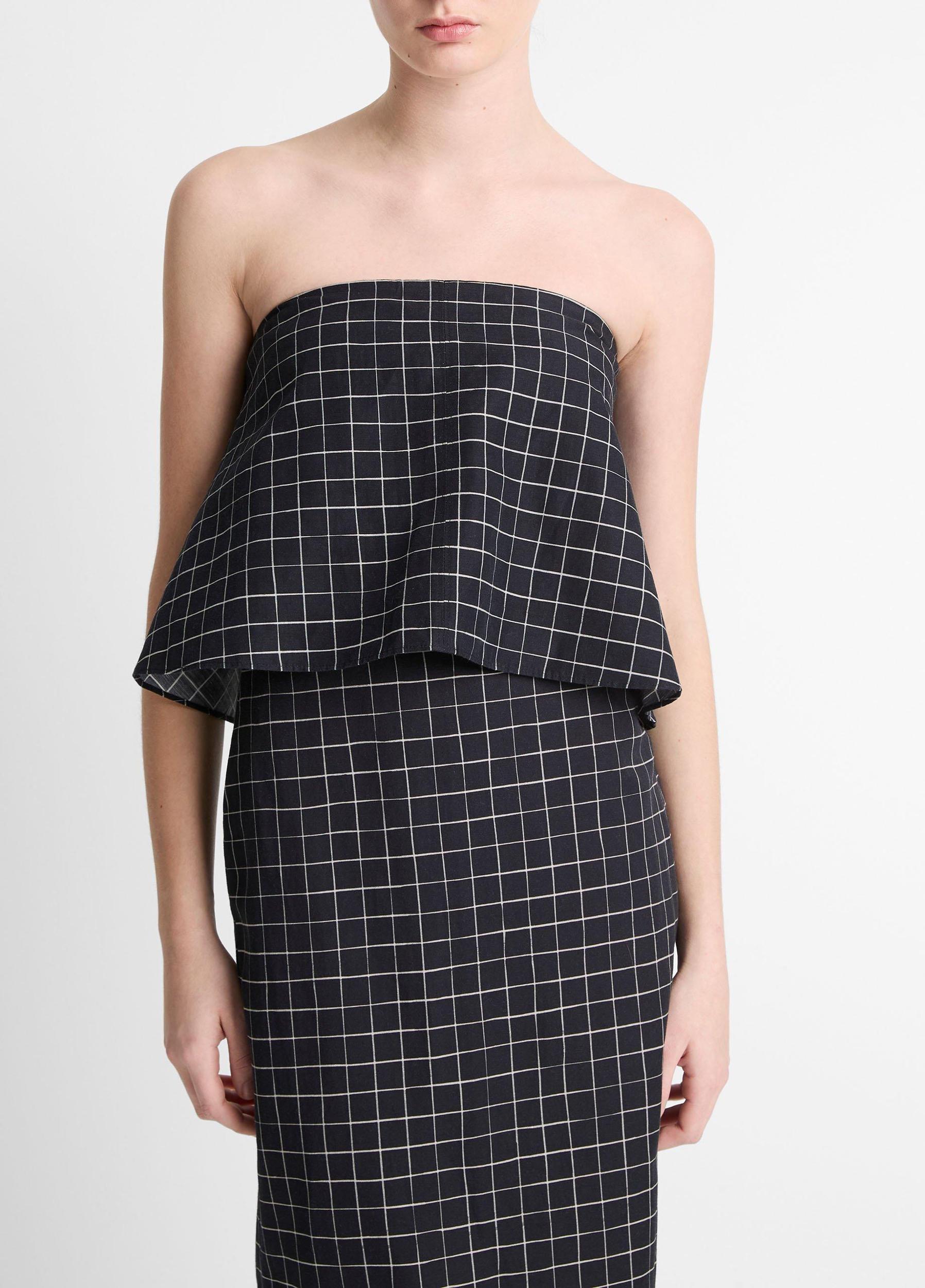 Gardening and utility planted the seeds for this season's collection, reflected here in our trellis-inspired check. Take heed: this A-line top is detailed with ties at the back and features removable straps — we added a rubber topline at the interior so it'll stay in place.