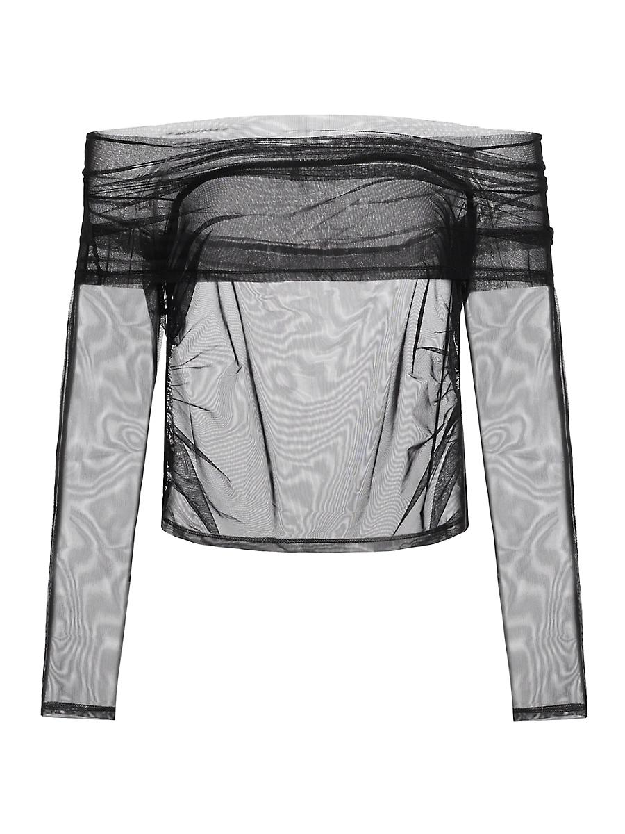 Crafted from extremely luxurious semi-sheer tulle, Kiki de Montparnasses off-the-shoulder top showcases an adjustable fold-down for desired length and long sleeves. Off-the-shoulder neck Long sleeves Pulls over 82% polyamide/18% elastane Dry clean Imported SIZE & FIT Model measurements: 510 tall Model is wearing a US size Small. Lingerie - Designer Foundations > Kiki De Montparnasse > Saks Fifth Avenue > Barneys. Kiki de Montparnasse. Color: Black. Size: Large.