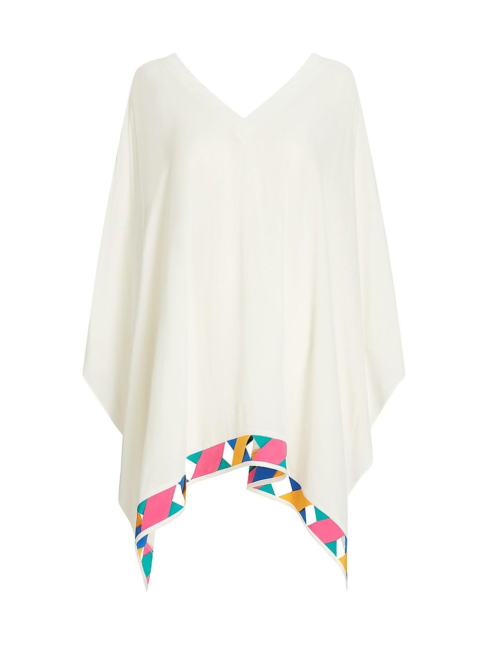 Valimares draped Tulum cover-up poncho dress is cut from chiffon and finished with a colorblocked handkerchief hem. V-neck Pullover style 100% viscose Lining: 100% viscose Hand wash Imported SIZE About 29 from shoulder to hem Model measurements: 510 tall. Outerwear And Swimwear - Contemporary Swim > Valimare > Saks Fifth Avenue > Barneys. Valimare. Color: Off White.