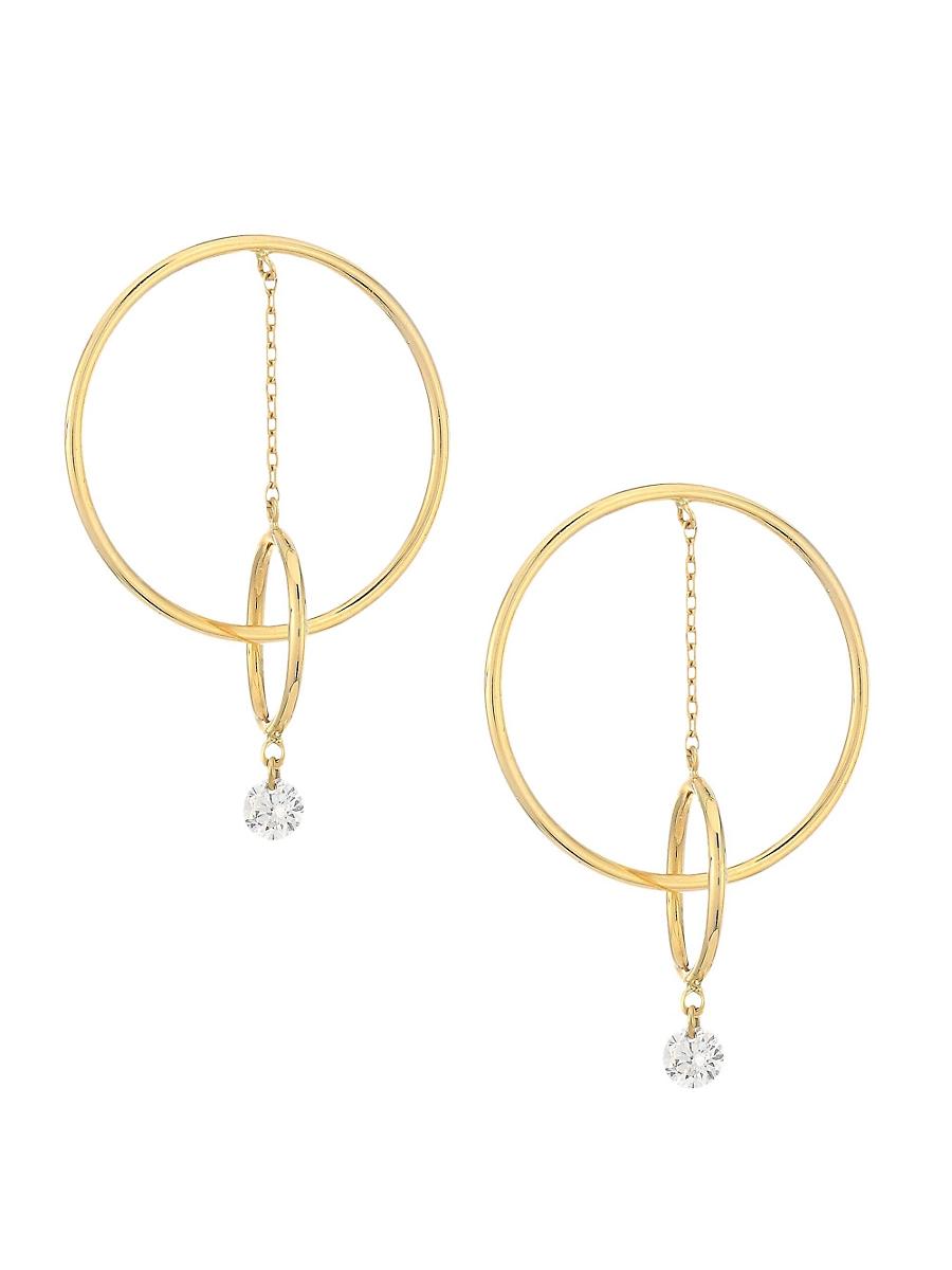 Modern geometric earrings feature interlocking hoops connected by a fine chain suspending a single shimmering diamond, creating the illusion of a floating hoop. Round-cut diamonds, 0.15 tcw Diamond clarity; SI1 Diamond color; H 18K yellow gold, 2.03 grams Post back Imported. Fashion Jewelry - Fashion Designer > Perse > Saks Fifth Avenue > Barneys. Perse. Color: Gold.