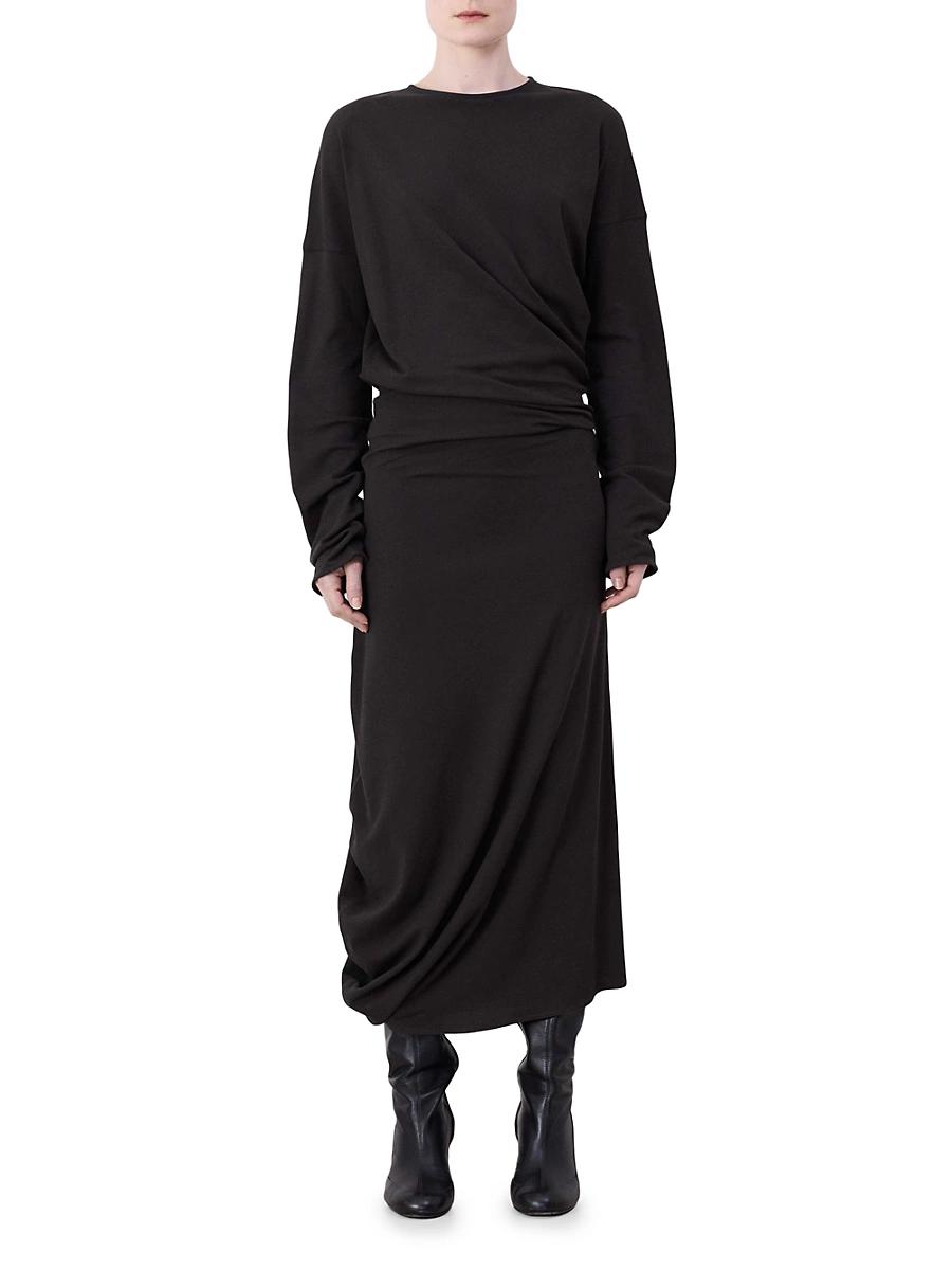 This Lemaire long-sleeve midi-dress is crafted of soft cotton and styled witha twisted effect at the waist. Round neck Long sleeves Pulls over 100% cotton Dry clean Made in Portugal SIZE & FIT Model measurements: 510 tall Model is wearing a US size 4. Advanced Designer - Designer Emerging Brands > Lemaire > Saks Fifth Avenue > Barneys. Lemaire. Color: Dark Espresso. Size: Large.