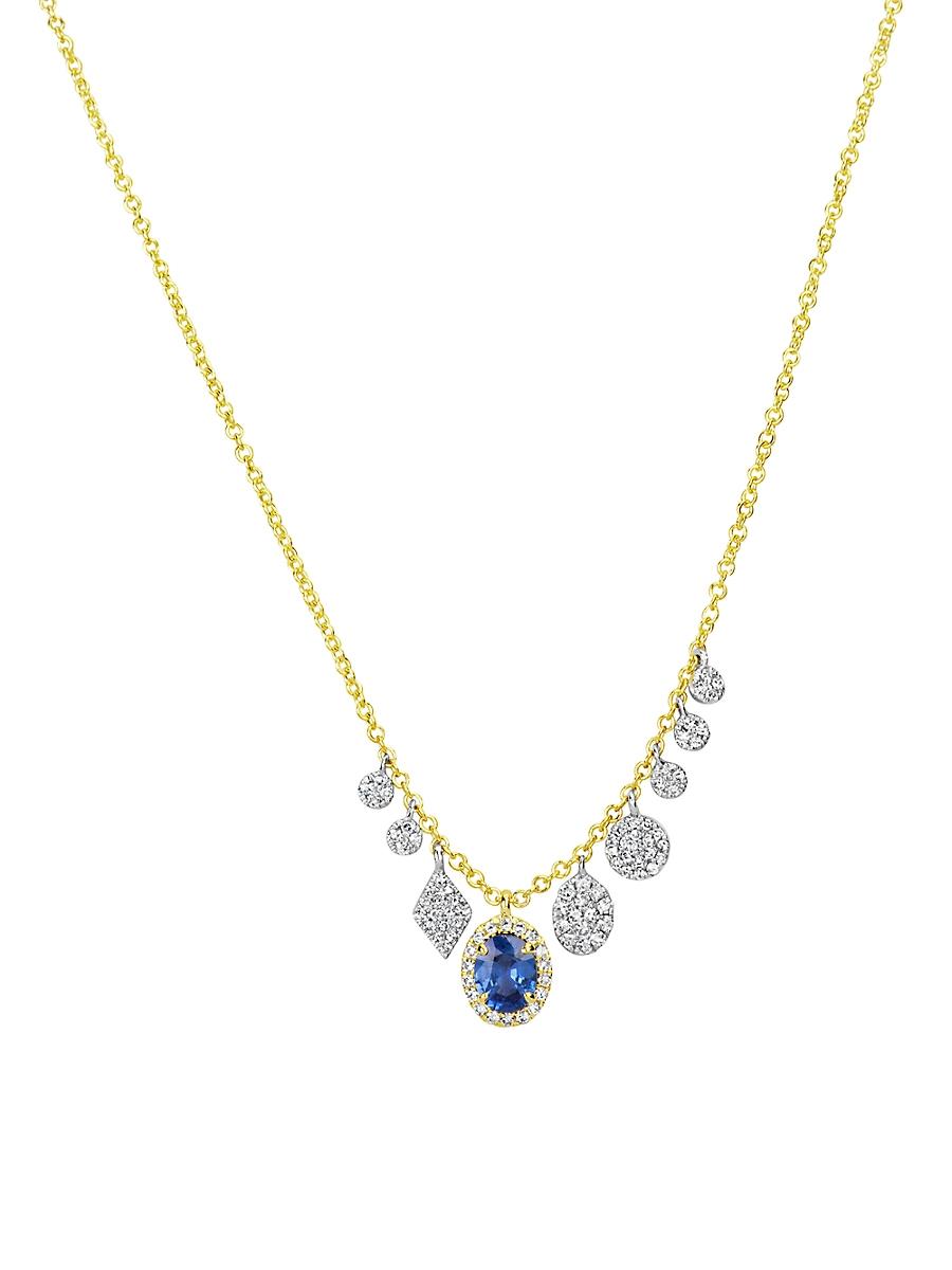 Meira Ts two-tone necklace is crafted of 14K yellow and white gold. This elegant piece features a blue sapphire pendant and diamond cluster charms on a delicate chain. Diamond,.22 tcw 14K yellow and white gold Lobster clasp Made in Spain SIZE Length, about 18. Fashion Jewelry - Fashion Designer > Meira T > Saks Fifth Avenue > Barneys. Meira T. Color: Gold.