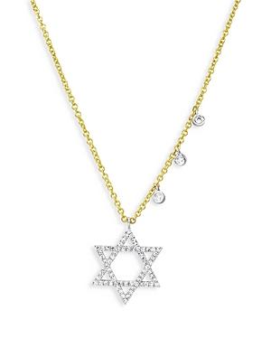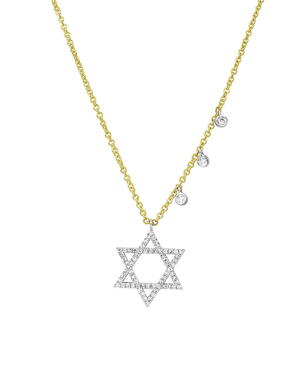 Made of 14K yellow and white gold, Meira Ts necklace flaunts a diamond-encrusted Star of David pendant and three petite round bezel-set diamonds at the chain. Diamonds, 0.33 tcw 14K yellow and white gold Made in Spain SIZE Adjustable 16-18 chain length Pendant drop, about 0.61. Fashion Jewelry - Fashion Designer > Meira T > Saks Fifth Avenue > Barneys. Meira T. Color: Yellow Gold.
