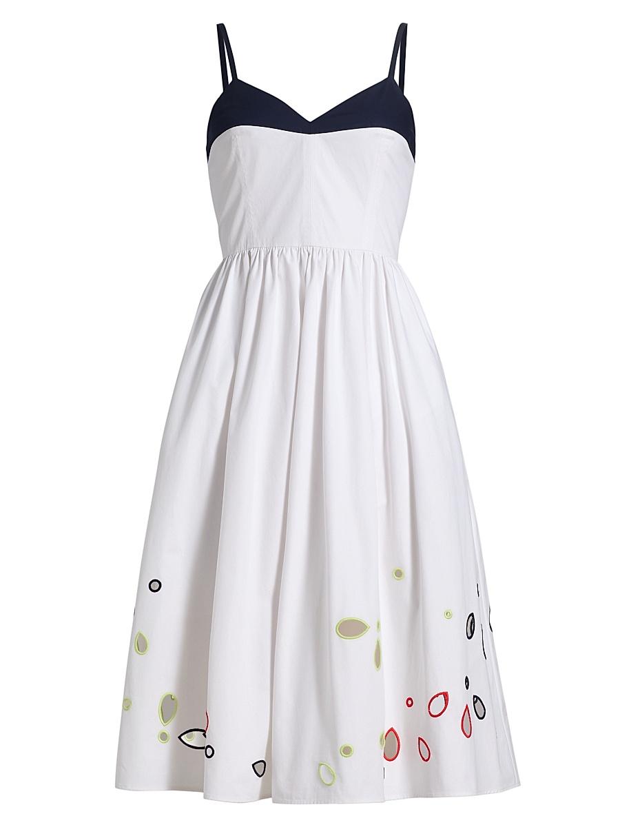 Rosie Assoulins Undress sleeveless midi-dress is crafted of soft cotton and features eyelet embroidery and a sweetheart neck. Sweetheart neck Sleeveless Concealed back zip closure 100% cotton Lining: 100% cotton Dry clean Imported SIZE & FIT Fit-and-flare silhouette Model measurements: 510 tall Model is wearing a US size 4. Designer Lifestyle - Designer Lifestyle Multi > Rosie Assoulin > Saks Fifth Avenue. Rosie Assoulin. Color: White Multi. Size: 4.