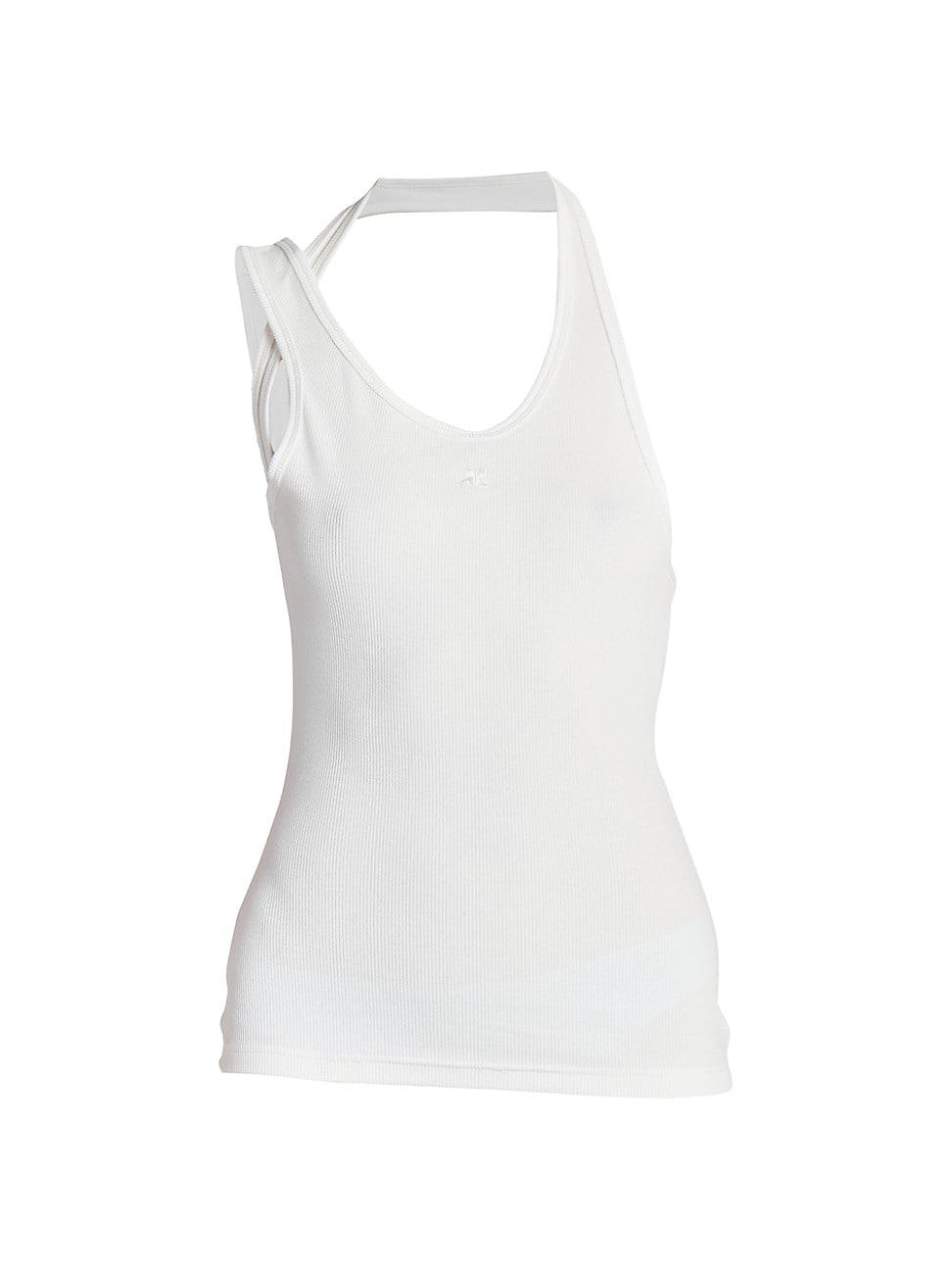 Cut for a fitted shape, the Undressed 90s tank top from Courreges features an asymmetric strappy design and rib-knit finish. The labels signature embroidery at the chest completes the cotton piece. Asymmetric scoopneck Sleeveless Pulls over 97% cotton//3% elastane Hand wash Made in Portugal SIZE & FIT Model measurements: 510 tall Model is wearing a US size Small. Advanced Designer - Designer Collections > Courreges > Saks Fifth Avenue > Barneys. Courreges. Color: Heritage White. Size: XS.
