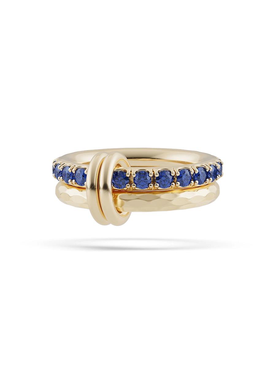 From the Vetra Vulcan Collection. Handcrafted of 18K yellow gold, Spinelli Kilcollins ring features one gemstone eternity band and one hammered band joined by two connectors. This striking piece may be worn stacked or across two fingers. Blue sapphires or emeralds 18K yellow gold Made in USA SIZE Band: about 2.8mm W each. Fine Jewelry - Designer Jewelry A > Spinelli Kilcollin > Saks Fifth Avenue > Barneys. Spinelli Kilcollin. Color: Blue. Size: 6.