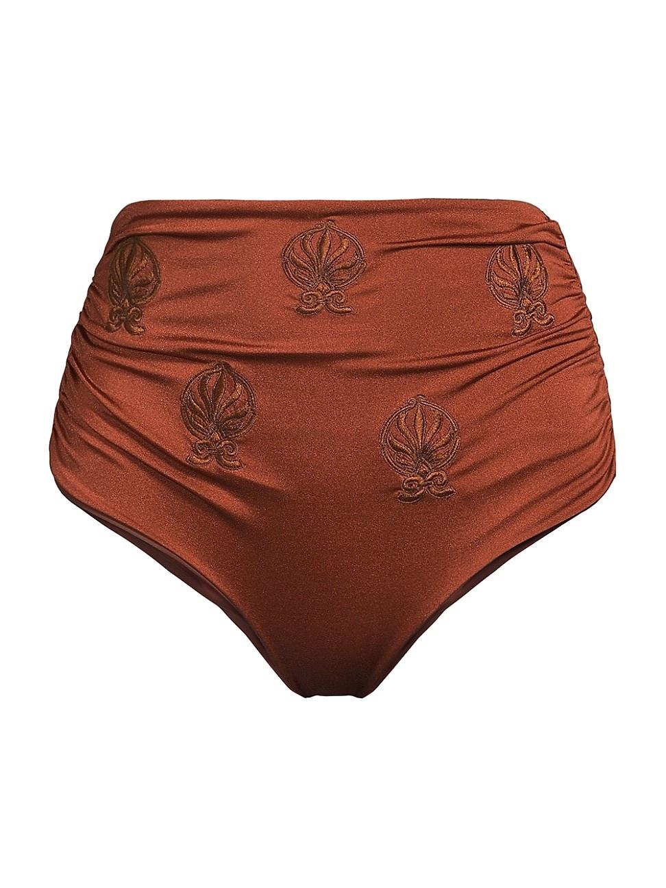 This ruched Victoria bikini bottom from Juan de Dios is designed with a flattering high waist and signature tonal embroidery. Ruched waist Cheeky back Pulls on 80% polyamide/20% elastane Machine wash Imported Please note: Bikini top sold separately. ABOUT THE BRAND Named after an idyllic bay in Colombia, Juan de Dios masters elegant swimwear with the tenets of Latin American design. Redefining vacation staples, the labels breezy pieces-including dresses, bathing suits and cover-ups-incorporate classic nature-inspired prints while keeping cuts clean and structured. Outerwear And Swimwear - Contemporary Swim > Juan De Dios > Saks Fifth Avenue > Barneys. Juan de Dios. Color: Dattero Namibia. Size: Large.