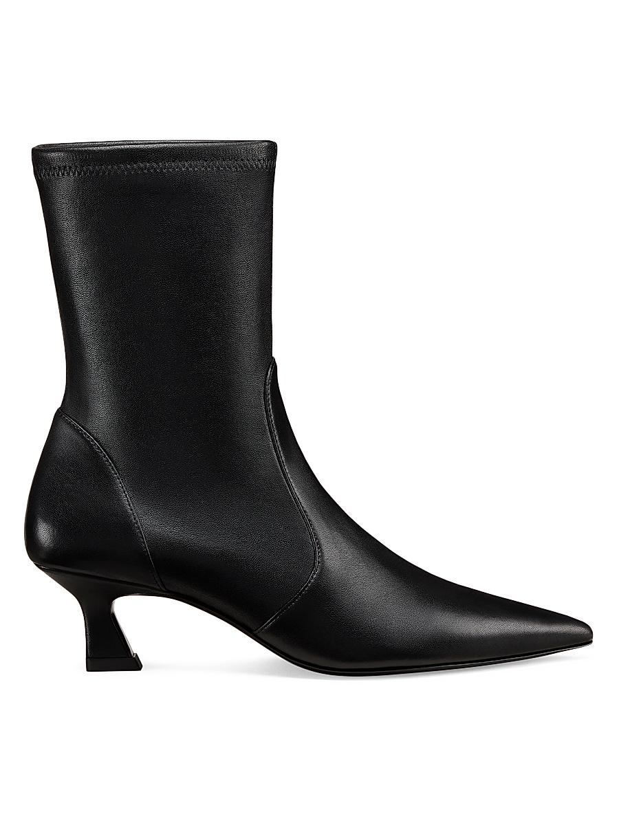 These Vinnie boots from Stuart Weitzman are crafted of leather and are set on a kitten heel. Point toe Pulls on Leather upper Leather/Lycra spandex lining Leather sole Made in Spain SIZE Kitten heel: about 2 (50mm) ABOUT THE BRAND Designer Stuart Weitzman started his career designing for his fathers shoe company, before launching his own brand in 1986. Known for his glamorous pumps and over-the-knee boots, Weitzman has also incorporated unique materials in his designs, ranging from Lucite and
