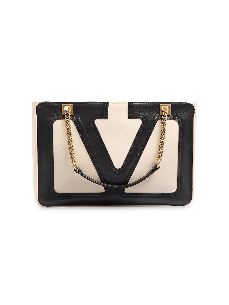 Valentino Garavani Viva Superstar small shopping bag in nappa leather. The bag features a contrasting maxi VLogo Signature and can be worn over the shoulder or crossbody thanks to the sliding chain. Antique gold finish hardware Zipper closure Nappa lining Exterior: slip pocket with zipper Dimensions: W27 x H18 x D3 cm / W10.6 x H7.1 x D1.2 in. Chain drop length: min. 24.5 cm to max. 46 cm / min. 9.6 to max. 18.1 in. Made in Italy. Lsd Handbags - Valentino Handbags > Valentino Garavani > Saks Fifth Avenue > Barneys. Valentino Garavani. Color: Ivory Black.