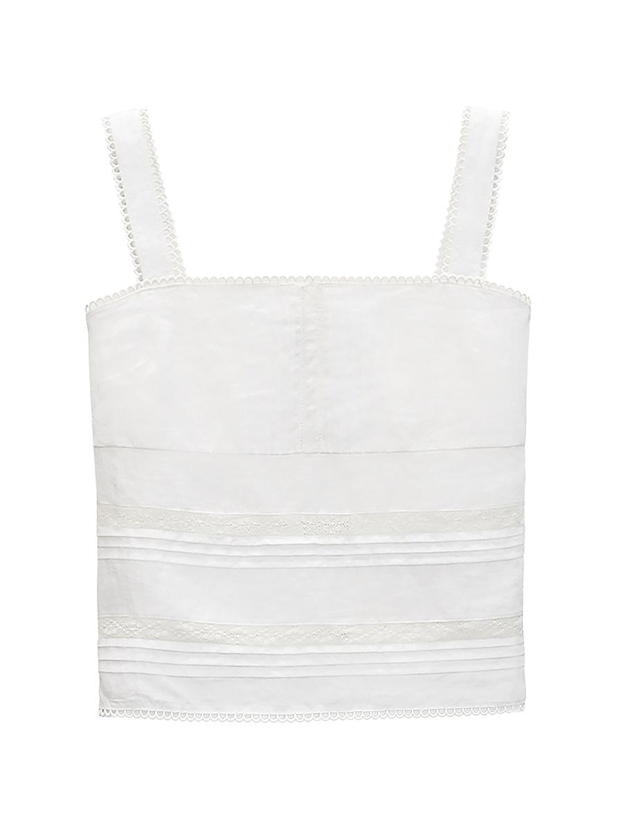 Cut for a boxy fit, the Viviana tank from rag & bone features delicate lace inserts and embroidered eyelet trim. Square neckline Fixed straps Pulls over 100% ramie Machine wash Imported SIZE & FIT About 11.75from center back neck edge to hem Model measurements: 510 tall Model is wearing a US size Small ABOUT THE BRAND In 2002, rag & bone founder Marcus Wainwright combined his British heritage with a downtown-New York aesthetic to set the tone for the label. At the heart of the edgy-yet-laid-b