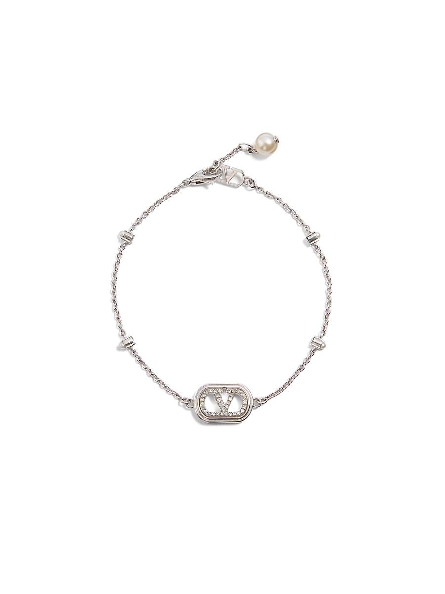 Vlogo signature bracelet in metal, pearls, and Swarovski crystals. Rhodiumtone finish Chain with pearl and Swarovski crystal details Available in sizes S M Size S adjustable length from 16 to 18 cm / 6.3 to 7.1 in. Size M adjustable length from 18 to 20 cm / 7.1 to 7.9 in. Swivel clasp closure with Swarovski pearl tip Made in Italy. Lsd Rtw - Valentino Rtw > Valentino Garavani > Saks Fifth Avenue > Barneys. Valentino Garavani. Color: Rhodium. Size: Medium.