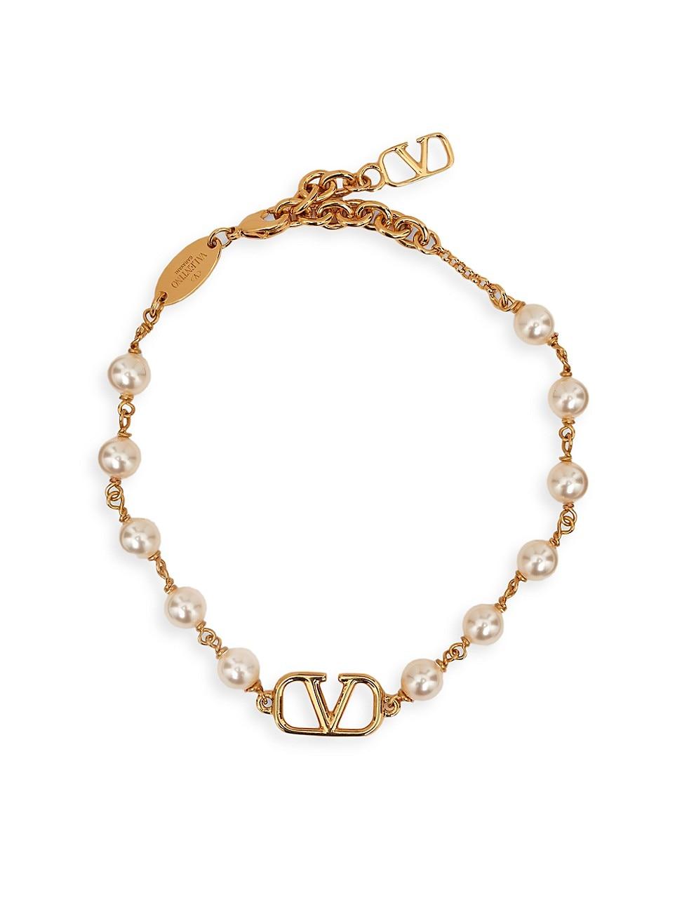 Valentino Garavani VLogo Signature metal bracelet with white crystal pearls. 18-gold-tone finish Adjustable fastening Made in Italy. Lsd Rtw - Valentino Rtw > Valentino Garavani > Saks Fifth Avenue > Barneys. Valentino Garavani. Color: Gold.