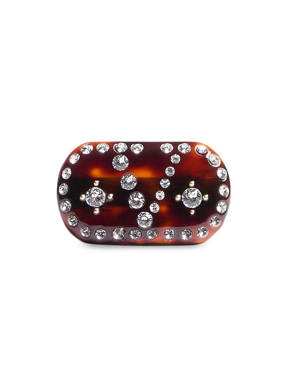 VLogo signature hair clip in resin, metal and crystals. Gold-tone finish Paris Stitching detail Dimensions: 3.5 x 2.2 cm / 1.4 x 0.9 in. Made in Italy. Lsd Rtw - Valentino Rtw > Valentino Garavani > Saks Fifth Avenue > Barneys. Valentino Garavani.