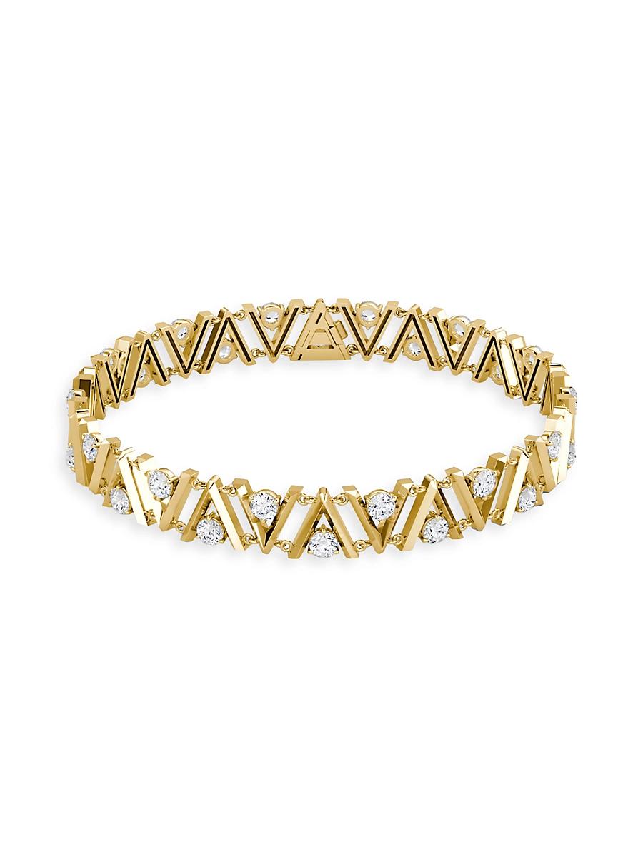 From the VRAI V Collection. Inspired by the labels signature motif, VRAIs 14K-yellow-gold tennis bracelet features knife-edge V links that lift and secure glittering round brilliant-cut diamonds. Lab-grown diamonds, 5.5 tcw Diamond color grade: J+ Diamond clarity grade: VS2+ 14K yellow gold Concealed clasp Made in USA SIZE About 7L Please note: This item ships directly from the vendor and may take up to 10 business days after the order is placed. Fine Jewelry - Lab Grown Designer C > Vrai > Saks Fifth Avenue > Barneys. VRAI. Color: Yellow Gold. Size: 7.
