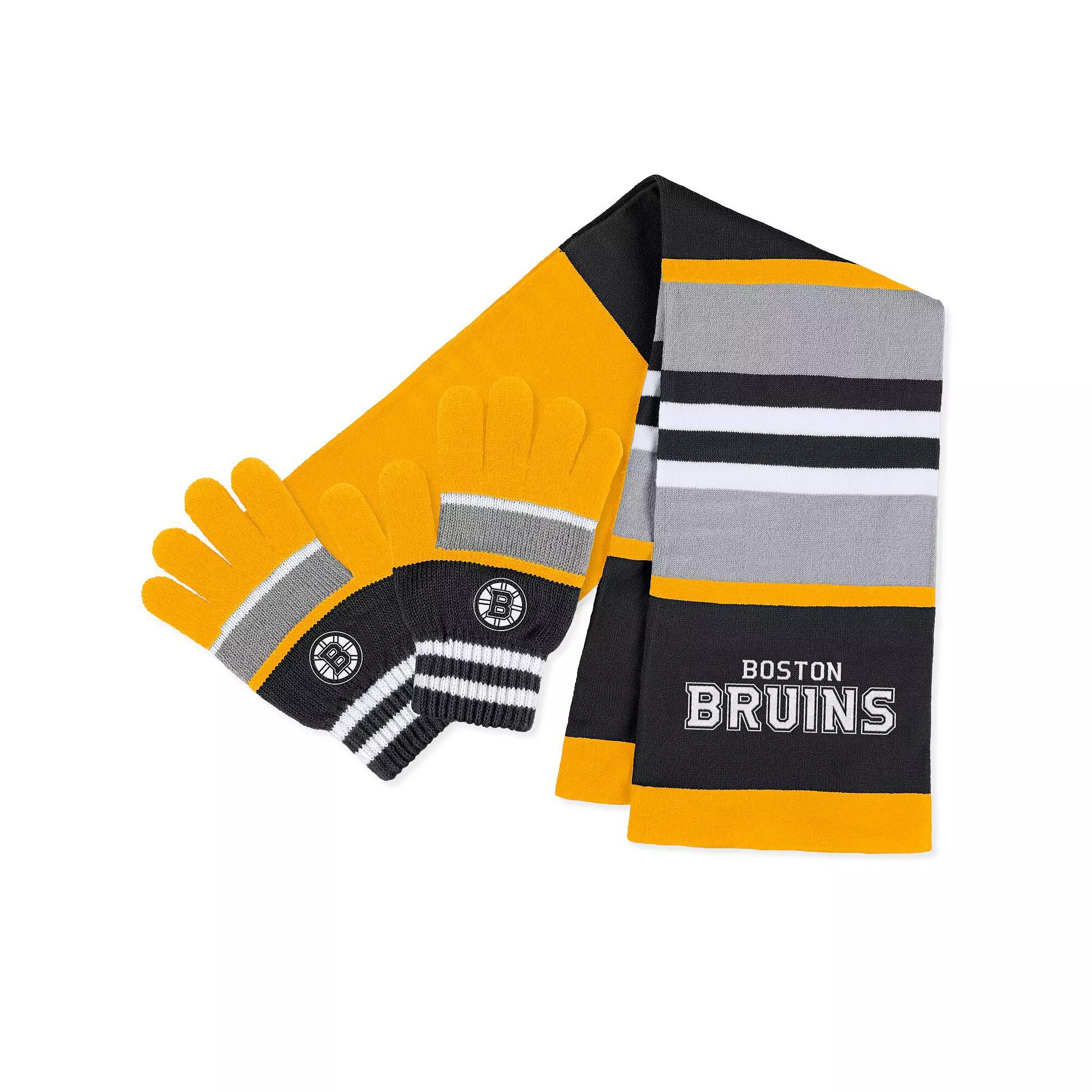 As temperatures descend, heat things up with this Boston Bruins scarf and gloves set from WEAR by Erin Andrews. This combo includes a cozy scarf and comfy gloves, both with spirited striped graphics to enhance your fandom in comfort. The scarfs decorative fringe ends and double-sided design make this a stylish ensemble you wont hesitate to reach for on colder Boston Bruins game days.