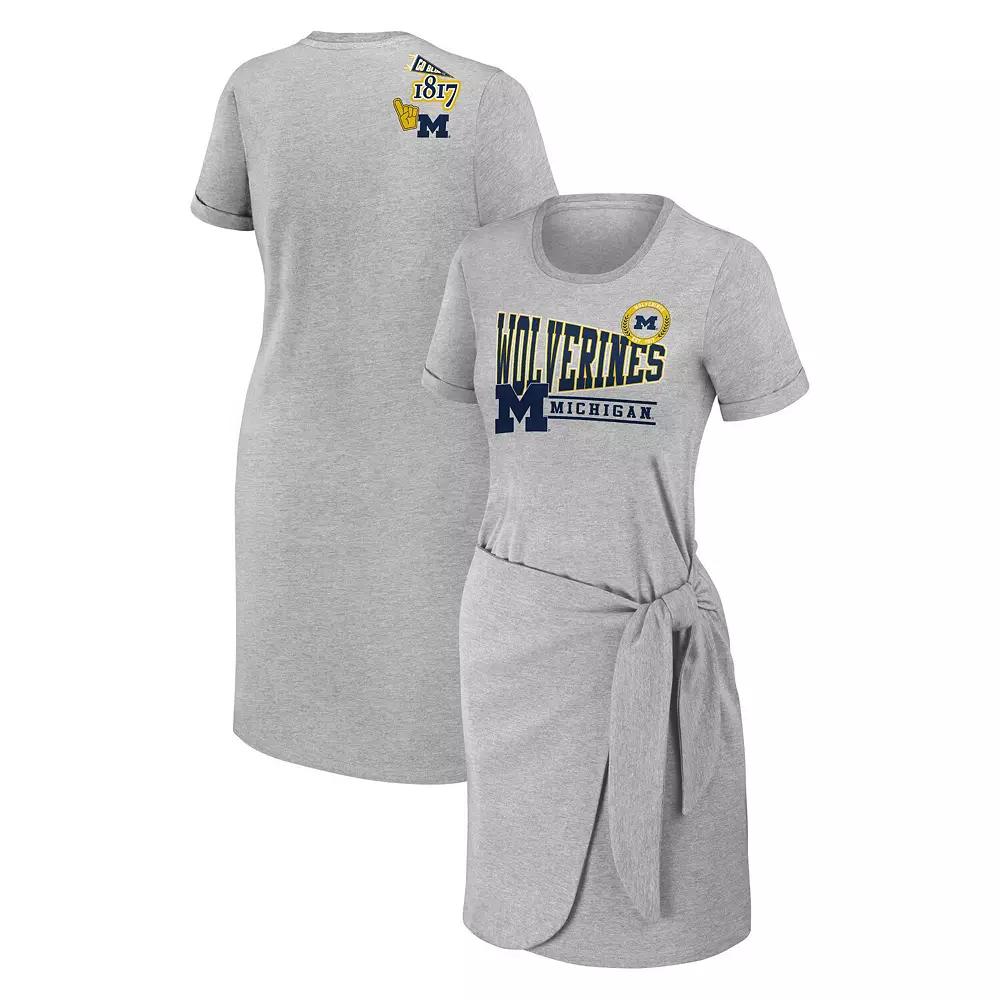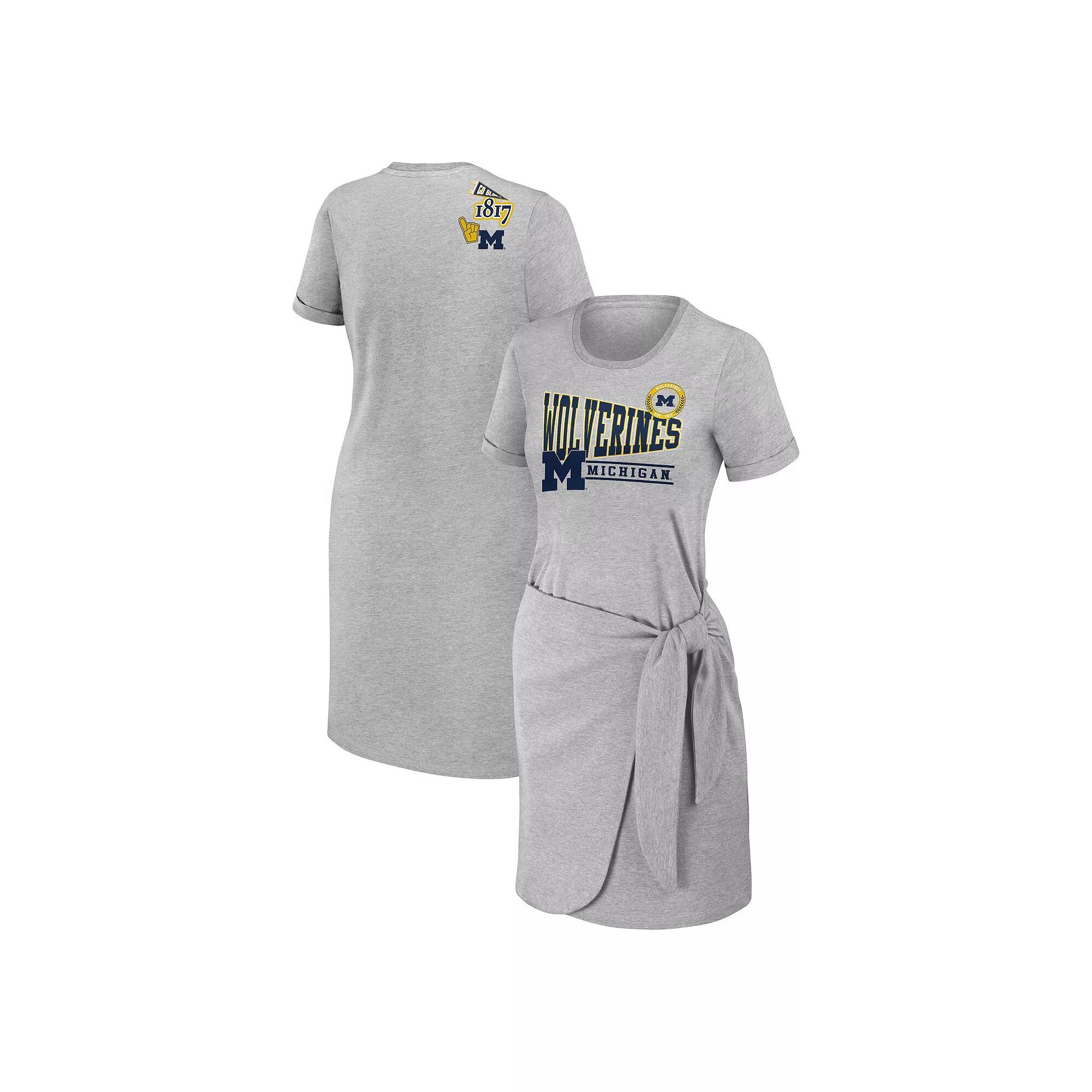 Women's WEAR by Erin Andrews Heather Gray Michigan Wolverines Knotted T-Shirt Dress,