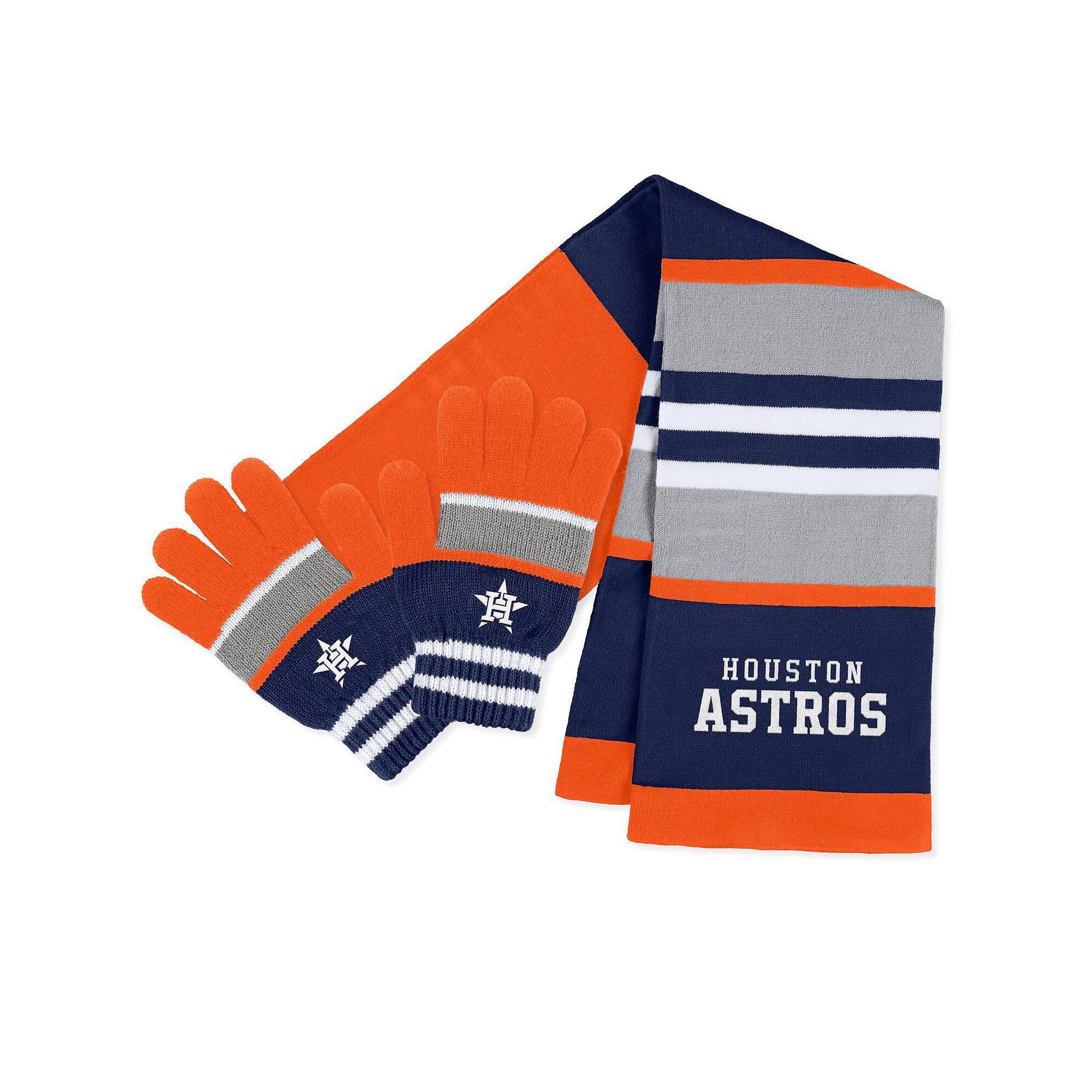 As temperatures descend, heat things up with this Houston Astros scarf and gloves set from WEAR by Erin Andrews. This combo includes a cozy scarf and comfy gloves, both with spirited striped graphics to enhance your fandom in comfort. The scarfs decorative fringe ends and double-sided design make this a stylish ensemble you wont hesitate to reach for on colder Houston Astros game days.As temperatures descend, heat things up with this Houston Astros scarf and gloves set from WEAR by Erin Andrews. This combo includes a cozy scarf and comfy gloves, both with spirited striped graphics to enhance your fandom in comfort. The scarfs decorative fringe ends and double-sided design make this a stylish ensemble you wont hesitate to reach for on colder Houston Astros game days.One size fits mostOfficially licensedHand wash, dry flatMaterial: 95% Acrylic/1% Elastane/4% Other Fibers - Scarf; 96% Acrylic/1% Elastane/3% Other Fibers - GlovesScarf measures approx. 64 x 7Screen print graphicsKnit designImportedWoven fabric appliqueSingle-sided design on scarfBrand: WEAR by Erin AndrewsEmbroidered graphicsSet includes knit gloves and scarf Color: Multicolor. Gender: female. Age Group: adult. Material: COTTON.