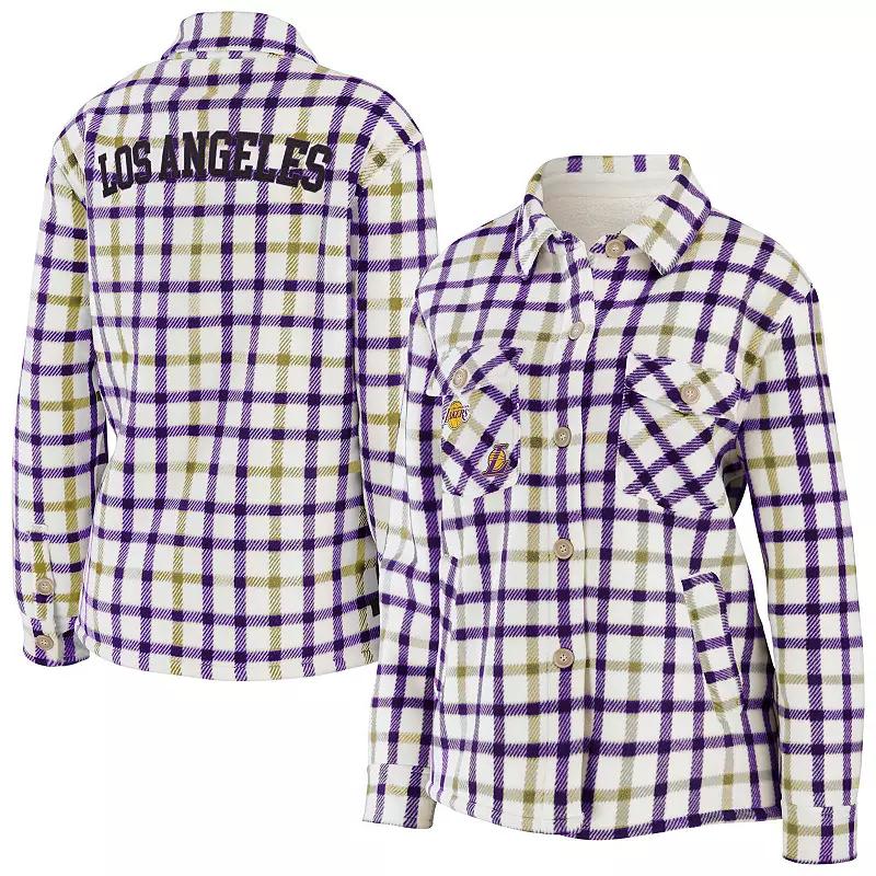 Womens WEAR by Erin Andrews Oatmeal/Purple Los Angeles Lakers Plaid Button-Up Shirt Jacket