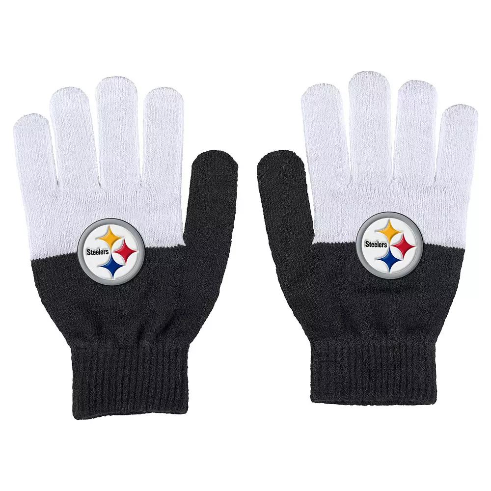Keep your hands warm in the cozy feel of these Pittsburgh Steelers Speckled gloves from WEAR by Erin Andrews. The color-block design features the Pittsburgh Steelers logo printed on a blend of soft, stretch fabrics. Rib-knit cuffs help trap in heat for continuous comfort.