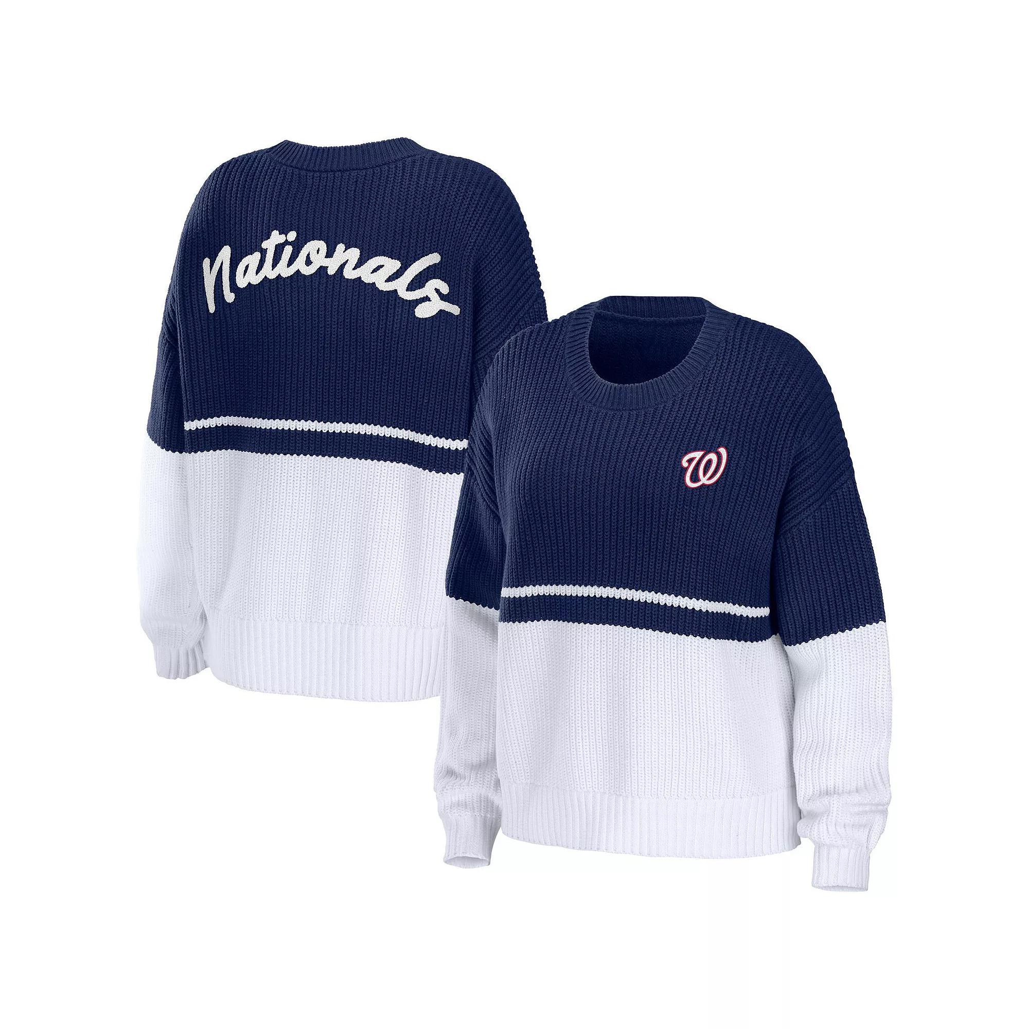 This Chunky pullover sweater from Wear by Erin Andrews is where style meets comfort. It features an eye-catching Washington Nationals design with signature colors and a chenille script wordmark across the back. Dropped shoulders create extra arm room, while the cozy midweight design keeps you warm. Other Sports Fan Shop