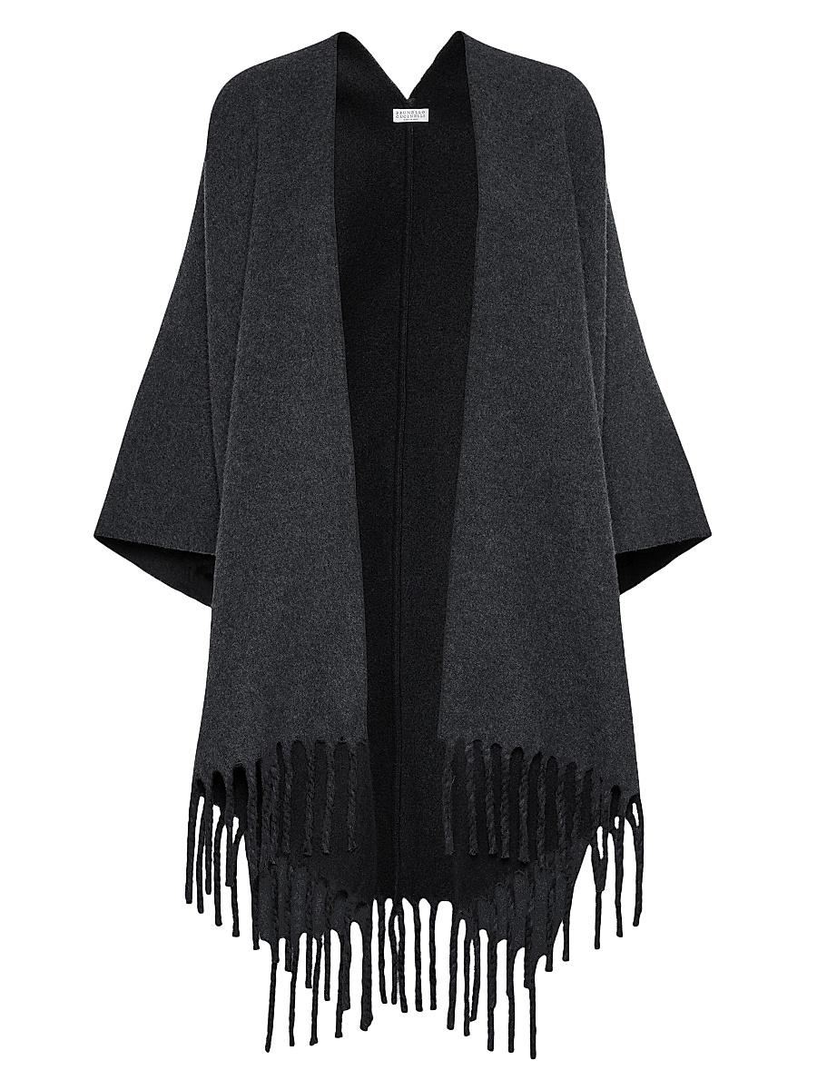 Wool and cashmere double knit poncho. Hem with fringe Special workmanship Request dry cleaning at specialist cleaners only, do not bleach. Do not tumble dry, iron at low temperature 60% wool / 40% cashmere Made in Italy. Lsd Rtw - Brunello Cucinelli Rtw > Brunello Cucinelli > Saks Fifth Avenue > Barneys. Brunello Cucinelli. Color: Grey.