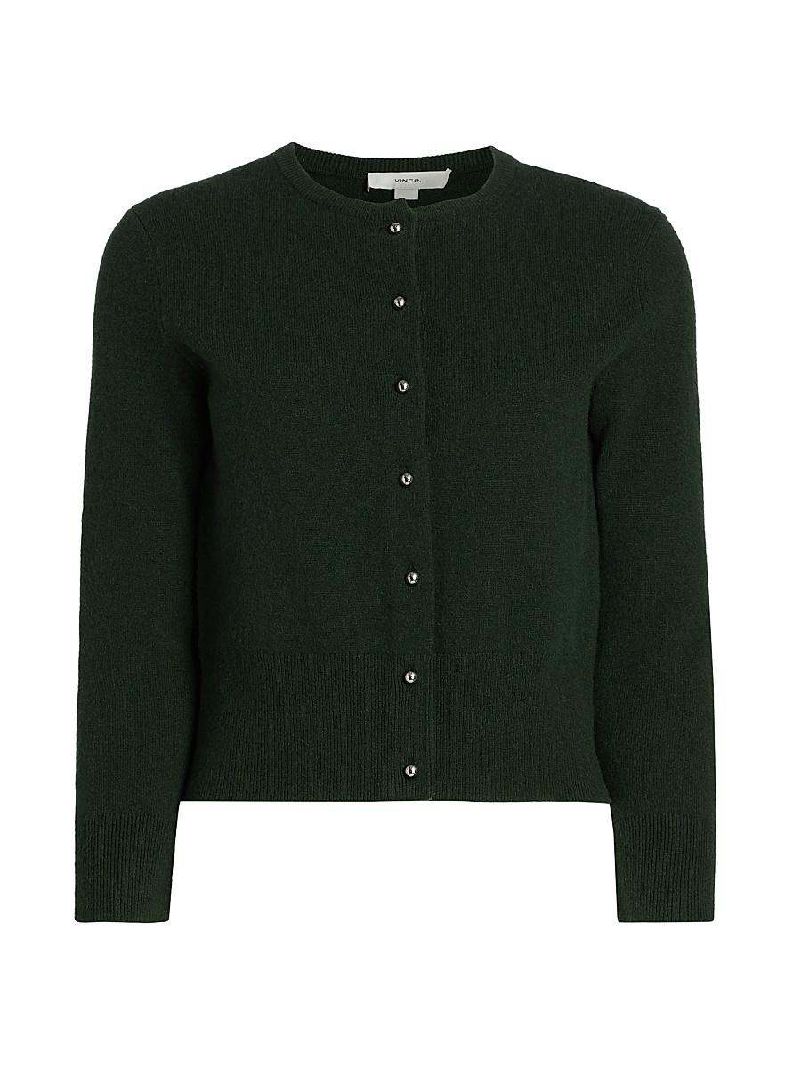 This crewneck cardigan from Vince is crafted of a wool and cashmere blend and features a metal button-front closure. Crewneck Long sleeves Button-front closure 67% wool/28% cashmere/4% nylon/1% spandex Hand wash Imported SIZE & FIT About 20.25 from shoulder to hem Model measurements: 510 tall Model is wearing a US size Small Please note: This brand fits slightly larger. Consider ordering a half size down. Contemporary Sportswear - Vince > Vince > Saks Fifth Avenue. Vince. Color: Forest. Size: