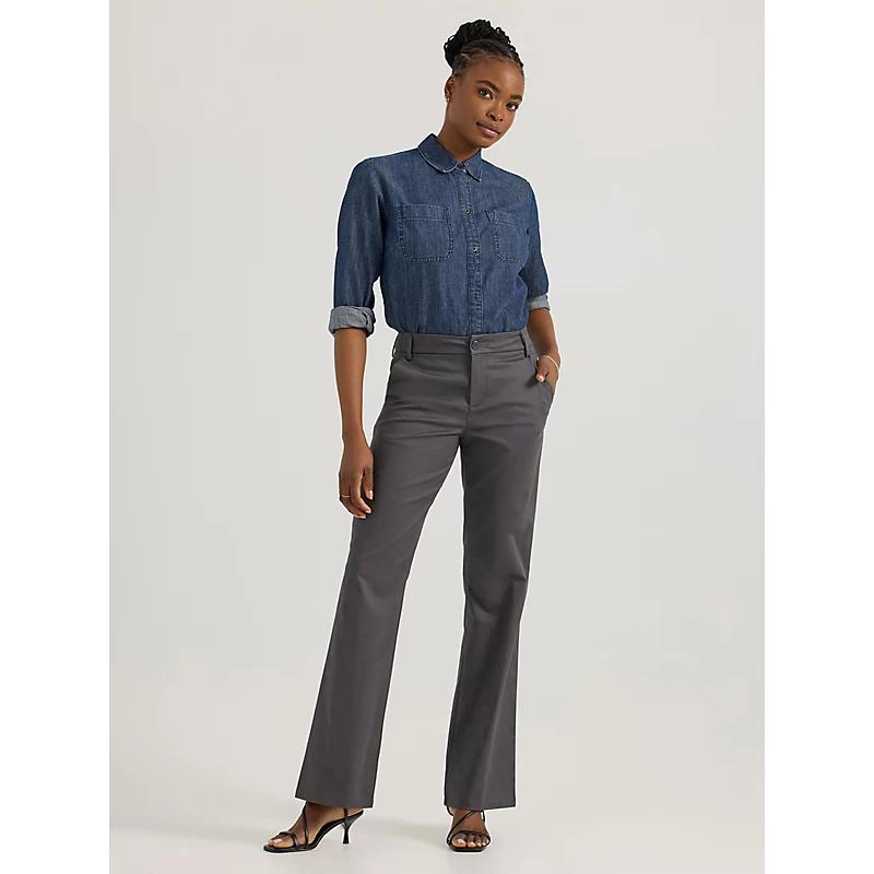 Professional style is effortless with these womens Wrinkle Free Bootcut Pants from Lee.Click on this WOMENS GUIDE to find the perfect fit and more! Professional style is effortless with these womens Wrinkle Free Bootcut Pants from Lee.Click on this WOMENS GUIDE to find the perfect fit and more! FEATURES Wrinkle free fabric Button & zipper front Unlined Straight hem 4 pocketsFIT & SIZING Relaxed fit through the hip and thigh Midrise sits on the high hip Short: 29-in. inseam Regular: 31-in. inseam Long/tall (T/L): 33-in. inseam Bootcut leg opening 20-in. leg openingFABRIC & CARE Cotton, polyester, elastane Machine wash and tumble dry Imported Size: 4 Avg/Reg. Color: Static Gray. Gender: female. Age Group: adult.