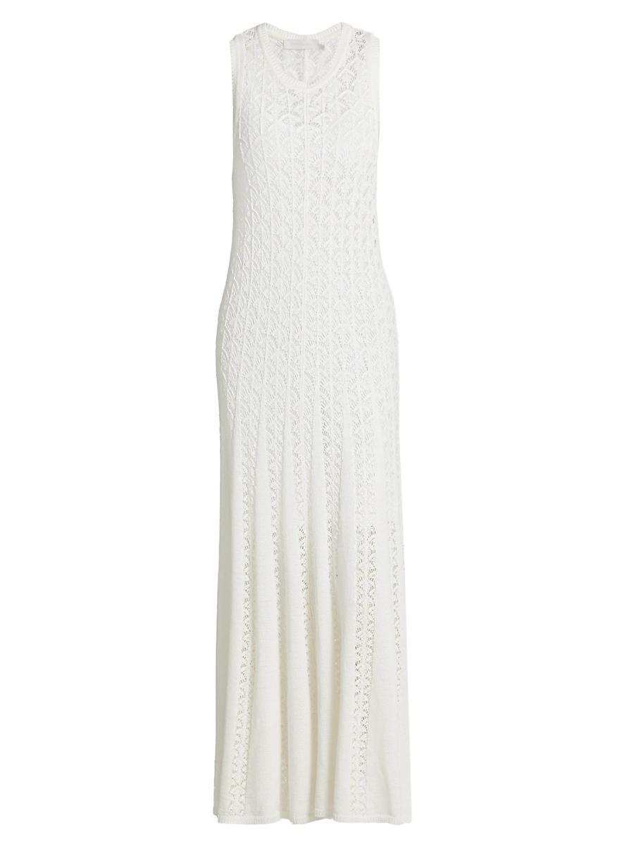 Crafted of airy cotton, this Wylie maxi dress from Zimmermann features pointelle patterning and a soft a-line silhouette. Round neck Sleeveless Pulls over 100% cotton Lining: 100% cotton Dry clean Imported SIZE & FIT About 58 from shoulder to hem Model measurements: 510 tall Model is wearing a US size 4 ABOUT THE BRAND Australian founders and sister-duo Nicky and Simone Zimmermann design with a signature feminine aesthetic, each piece rife with tiers of fabric, rich embroidery and splashy prints. From ruffled bikinis and beachwear to luxe, intricately patterned maxi (and mini) dresses, everything is overtly romantic in the most elevated, effortless way. Contemporary Sportswear - Zimmermann > Zimmermann > Saks Fifth Avenue > Barneys. Zimmermann. Color: Ivory. Size: 8.