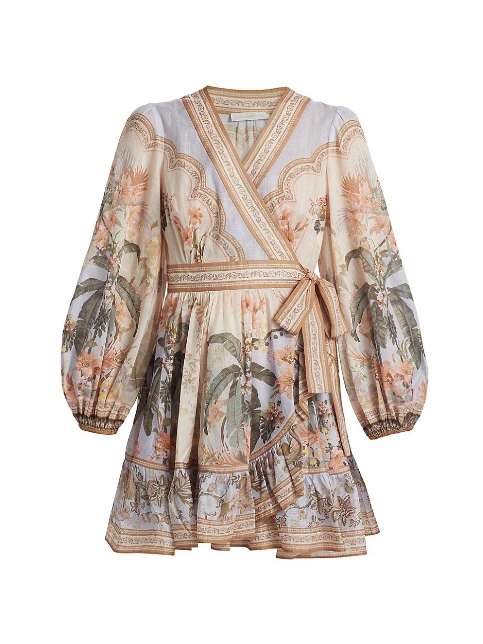 Crafted of woven cotton in a tropical floral print, the Wylie mini-dress from Zimmermann features a classic wrap silhouette with puff sleeves. A frill trim at the skirt completes the look. V-neck Long puff sleeves Wrap waist 100% cotton Dry clean Imported SIZE & FIT About 34 from shoulder to hem Bust: about 35 Model measurements: 510 tall Model is wearing a US size 4 Please Note: Compared to the Saks Size Guide, this style measures true to size. Contemporary Sportswear - Zimmermann > Zimmermann > Saks Fifth Avenue > Barneys. Zimmermann. Color: Blue Floral. Size: 2.