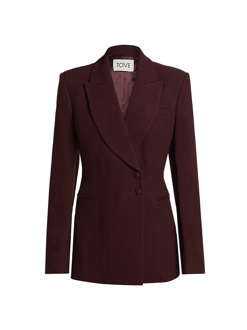 Toves Yana jacket showcases a wrapped-inspired front with an asymmetric button placement. This polished look features front besom pockets, a chest welt pocket, and peak lapels. Peak lapels Long sleeves Chest welt pocket Front besom pockets Button-front closure 92% viscose/8% polyamide Dry clean Made in Portugal SIZE & FIT This style is constructed in a woven, no-stretch fabric for a tailored fit About 29 from shoulder to hem Bust: about 36 Waist: about 34 Model measurements: 510 tall Model is wearing a US size 4. Designer Lifestyle - Designer Lifestyle Multi > Tove > Saks Fifth Avenue > Barneys. Tove. Color: Burgundy. Size: 2.