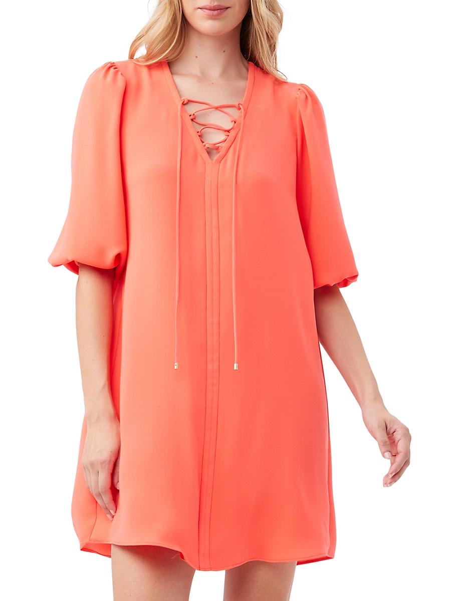 Cut for a flowy relaxed fit, the Zahara dress from Trina Turk is styled with a lace-up V-neck and elbow-length bubble sleeves. Front seam detailing finishes the look. Lace-up V-neck Elbow-length bubble sleeves Pulls over 100% polyester Dry clean Made in USA SIZE & FIT About 37 from shoulder to hem Model measurements: 510 tall Model is wearing a US size Small. Modern Collections - Branded Separates > Trina Turk > Saks Fifth Avenue > Barneys. Trina Turk. Color: Superflora. Size: XL.