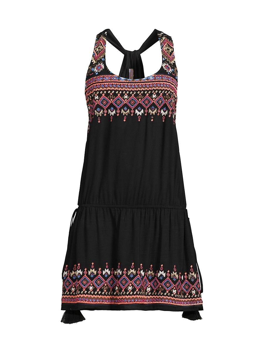 Ramy Brooks Zayden sleeveless minidress is styled with embroidered detailing. U-neck Sleeveless Pulls over 100% viscose Machine wash Imported SIZE & FIT About 33 from shoulder to hem Model measurements: 510 tall Model is wearing a US size Small. Outerwear And Swimwear - Contemporary Swim > Ramy Brook > Saks Fifth Avenue > Barneys. Ramy Brook. Color: Black Multi. Size: Medium.