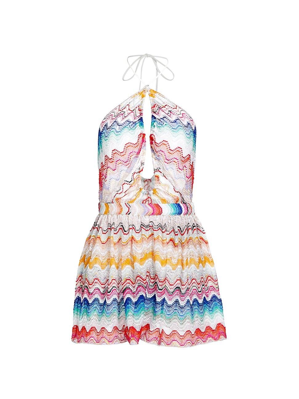 Rendered in a zigzag knit, this Missoni romper features a halterneck, keyhole cut out, and an open back. Halterneck Sleeveless Elasticized waist Open back Back tie closure 87% viscose/7% Lurex metallic fibers/6% polyamide Dry clean Made in Italy SIZE & FIT Model measurements: 510 tall Model is wearing a US size 4. Outerwear And Swimwear - Designer Swimwear > Missoni > Saks Fifth Avenue > Barneys. Missoni. Color: Multicolor White Base. Size: 2.