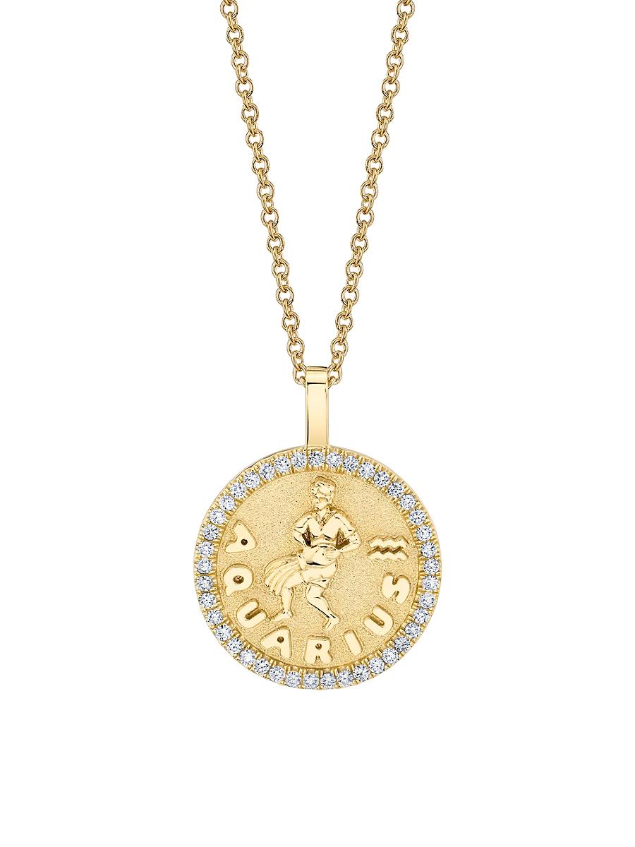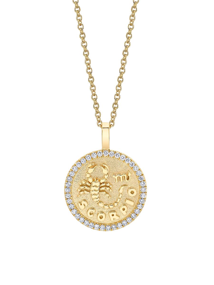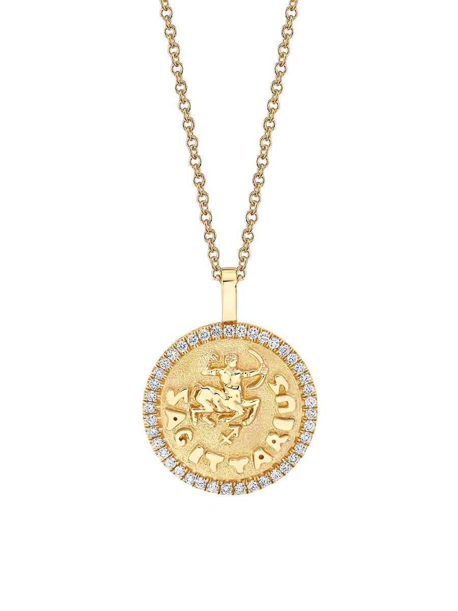 Made of 18K yellow gold, this elegant necklace features an embossed Sagittarius coin pendant bordered by sparkling pav white diamonds. Diamonds, 0.48 tcw 18K yellow gold Made in USA SIZE Length, about 20. Fashion Jewelry - Designer Fine Jewelry > Anita Ko > Saks Fifth Avenue > Barneys. Anita Ko. Color: Sagittarius.