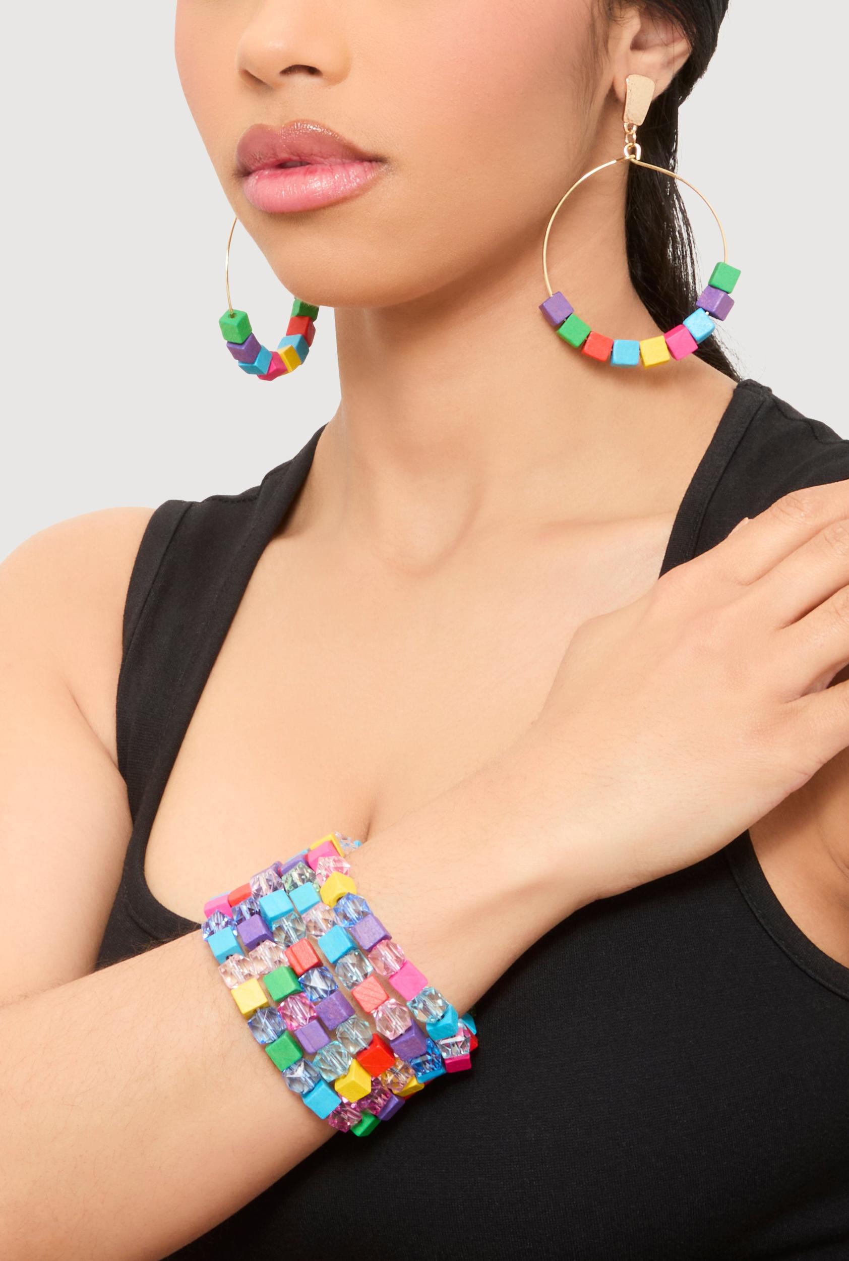 Details & Fit Post - Push Back Hoop Earrings Stretch Bracelet 2 Piece Set Beaded Metallic Solid Final Sale - No Returns Content & Care Material: All Man-Made Material Country Of Origin: China Rainbow Item Number 1194076382233